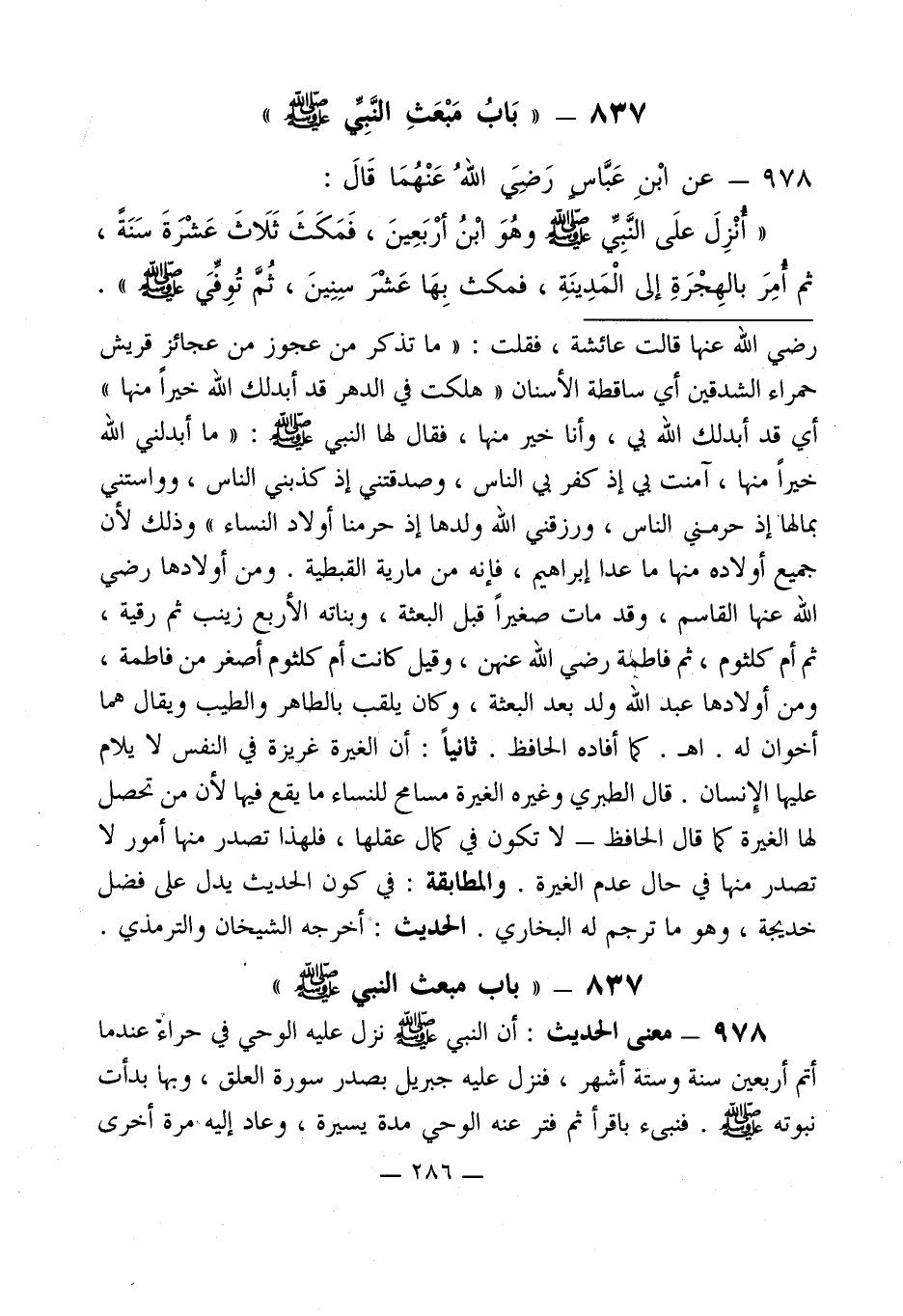 837 - " باب مبعث النبي - صلى الله عليه وسلم - "