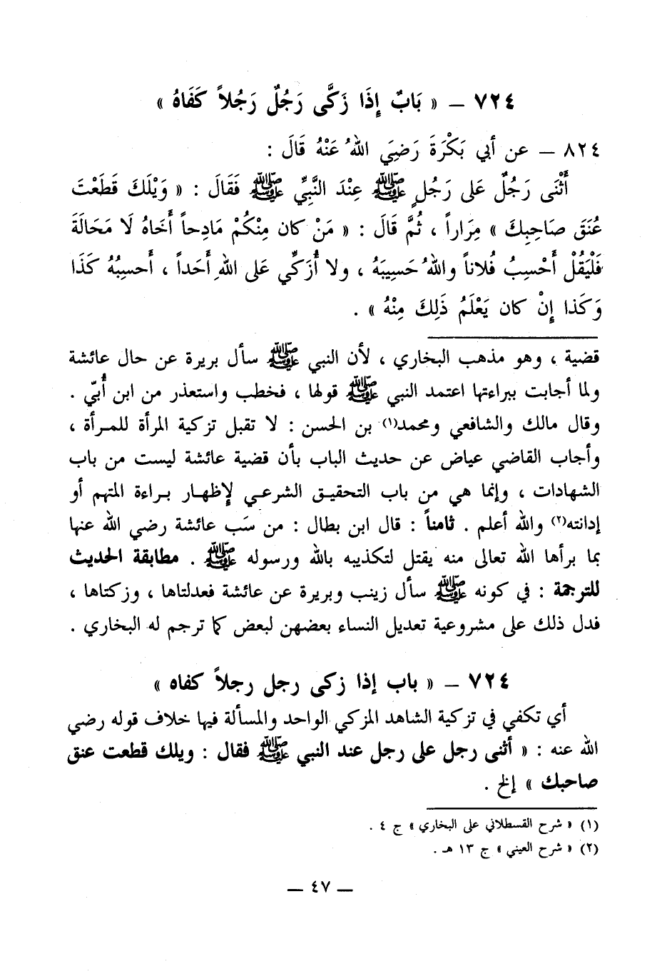 724 - " باب إذا زكى رجل رجلاً كفاه "