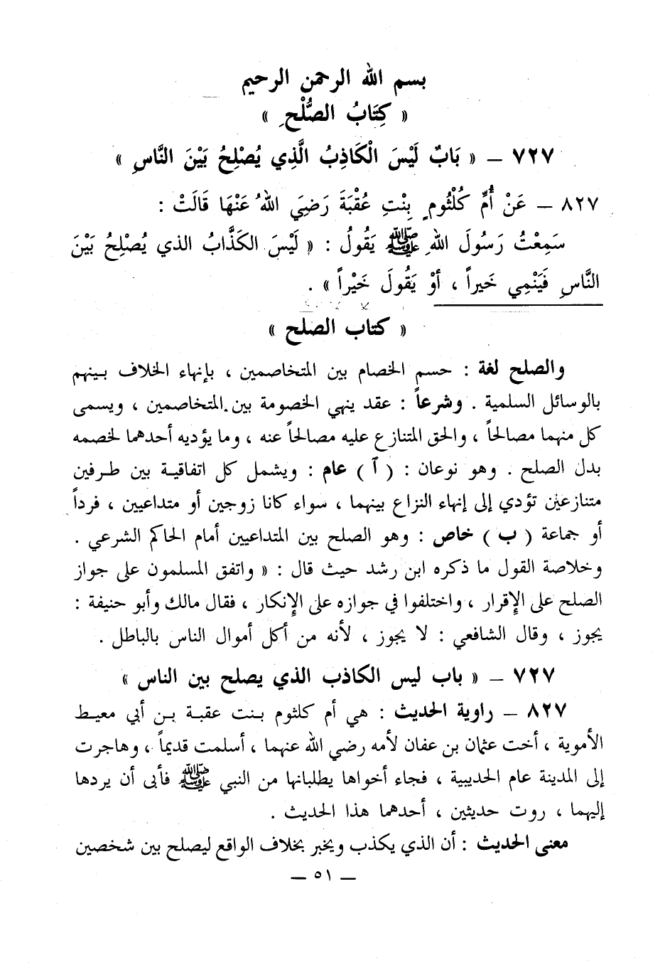 727 - " بَاب لَيْسَ الْكَاذِبُ الَّذِي يُصْلِحُ بَيْنَ الناس "