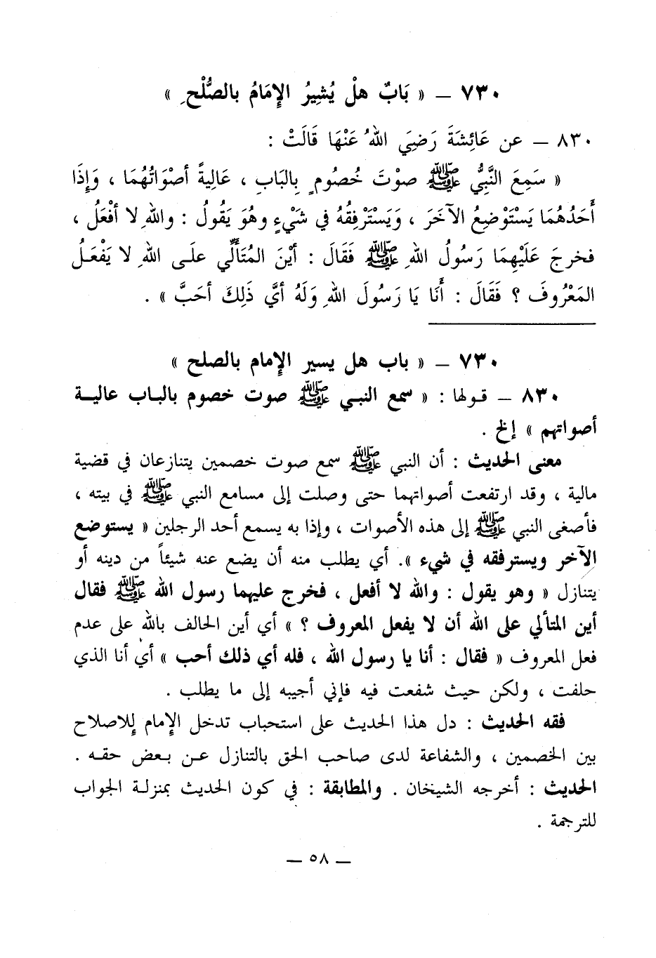 730 - " بَابٌ هلْ يُشِيرُ الإِمَامُ بالصُّلْحَ "