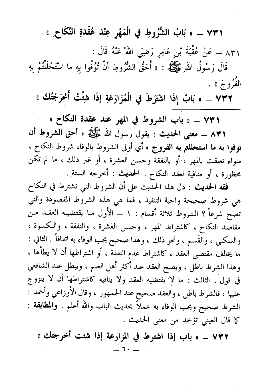 731 - " بَابُ الشُّرُوطِ في الْمَهْرِ عِنْدَ عُقْدَةِ النِّكَاحِ "