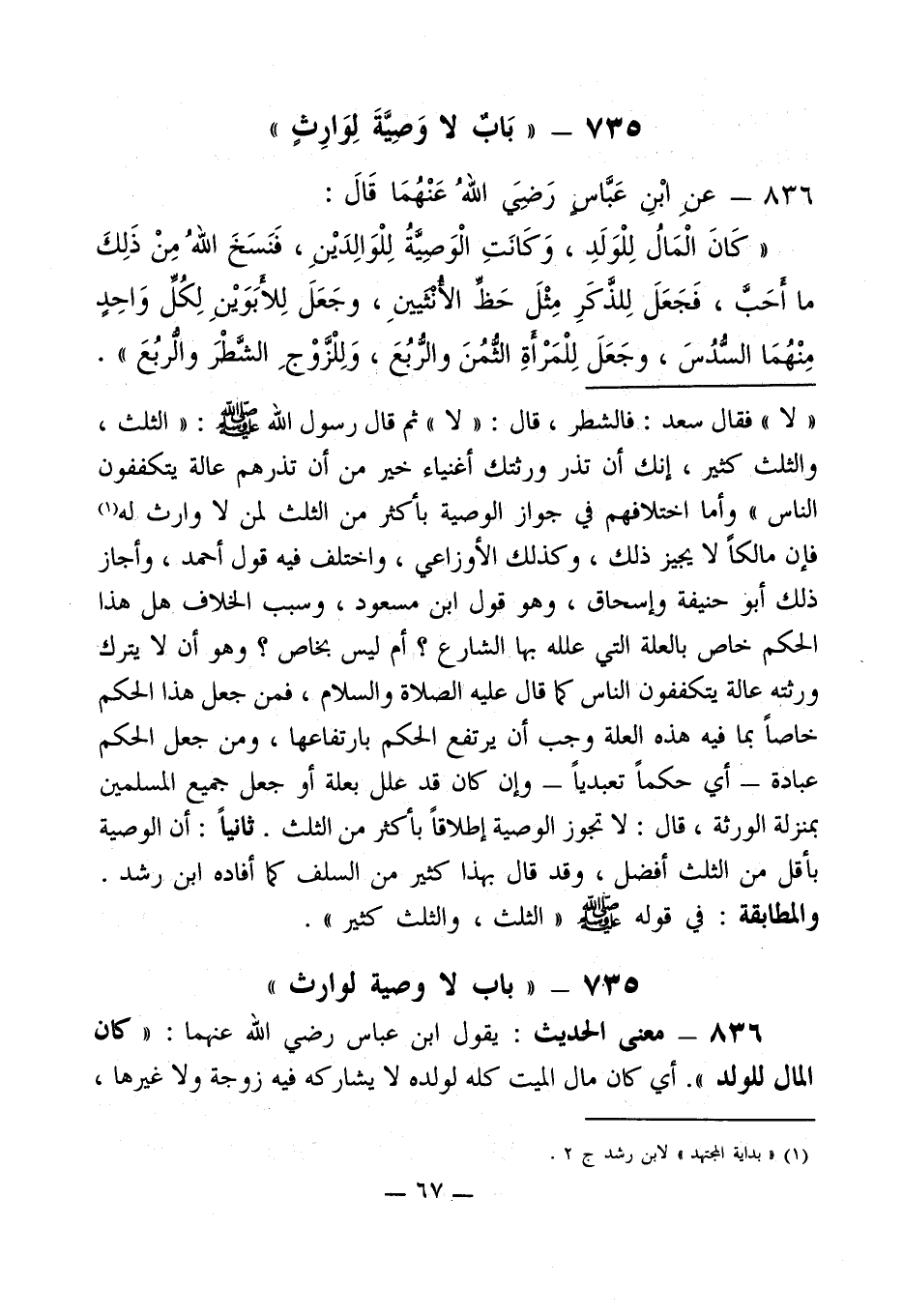 735 - " بَابٌ لا وَصِيةَ لِوَارِثٍ "