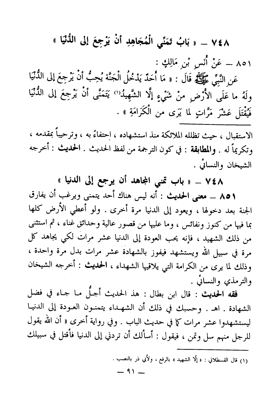 748 - " باب تمني المجاهد أن يرجع إلى الدنيا "