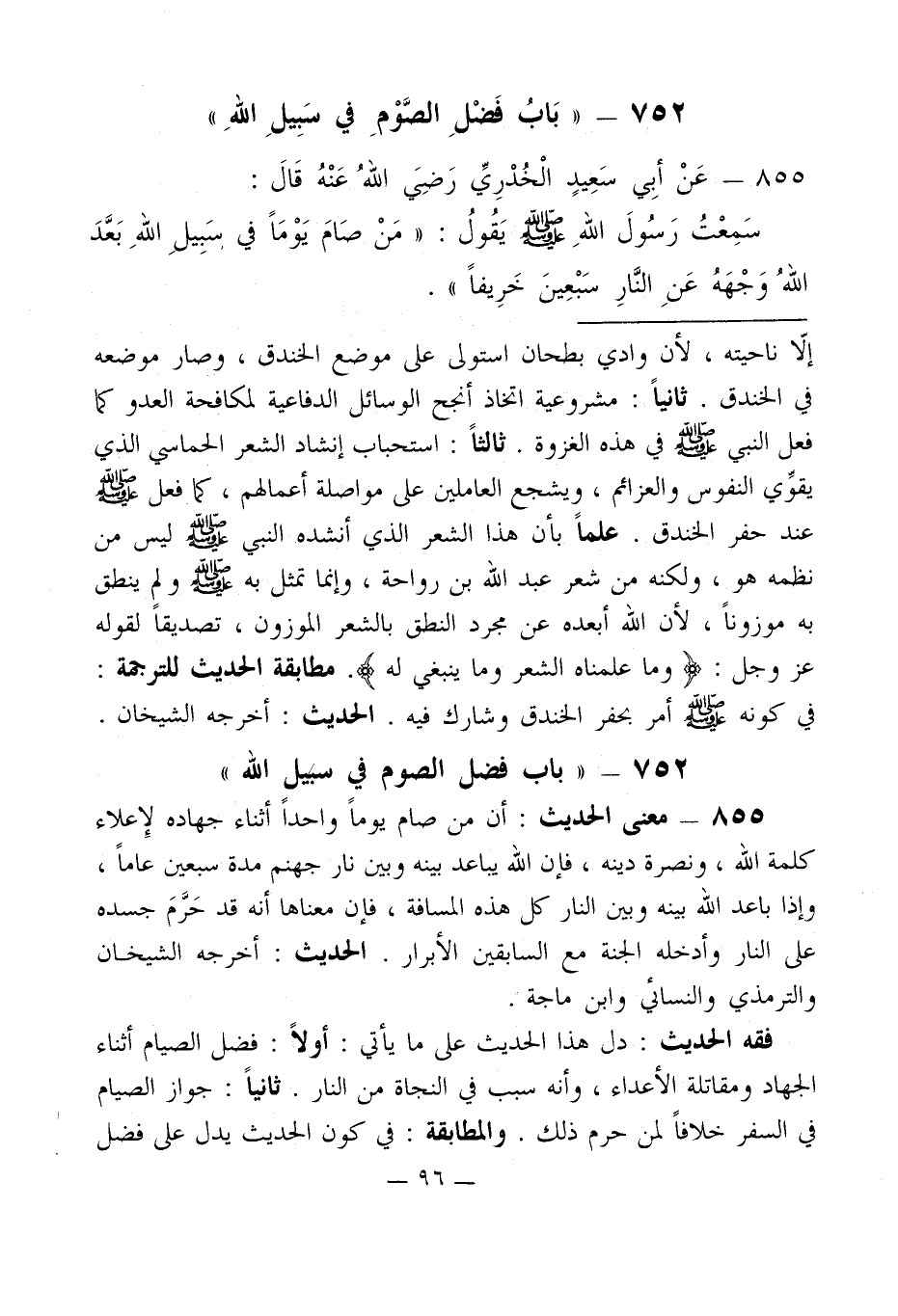 752 - " بَابُ فضلِ الصَّوْمِ في سَبِيلِ اللهِ "