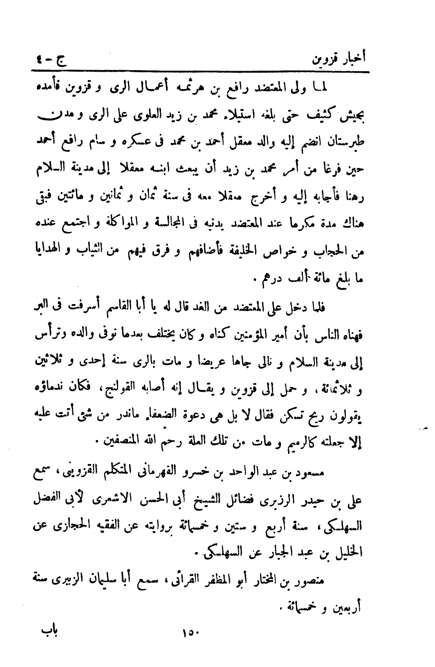 مسعود بْن عبد الواحد بْن خسرو القهرماني المتكلم القزويني سمع علي بْن حيدر الرزبري فضائل الشيخ أبي الحسن الأشعري لأبي الفضل السهلكي سنة أربع وستين وخمسمائة بروايته عن الفقيه الحجازي عن الْخَلِيلُ بْنُ عَبْدِ الْجَبَّارِ عَنْ السهلكي.