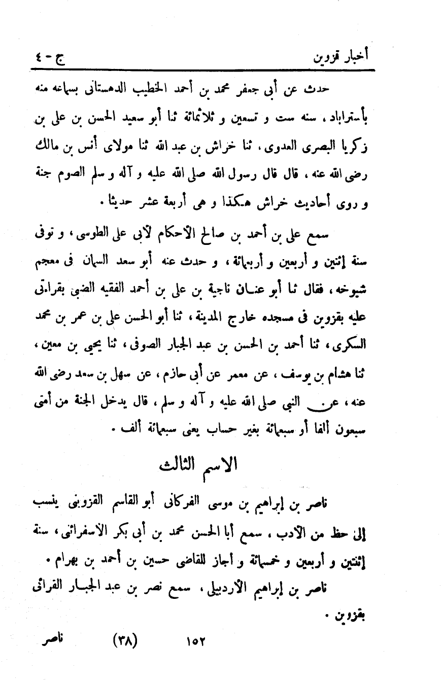 ناصر بْن إبراهيم الأردبيلي سمع نصر بْن عبد الجبار القرائي بقزوين.