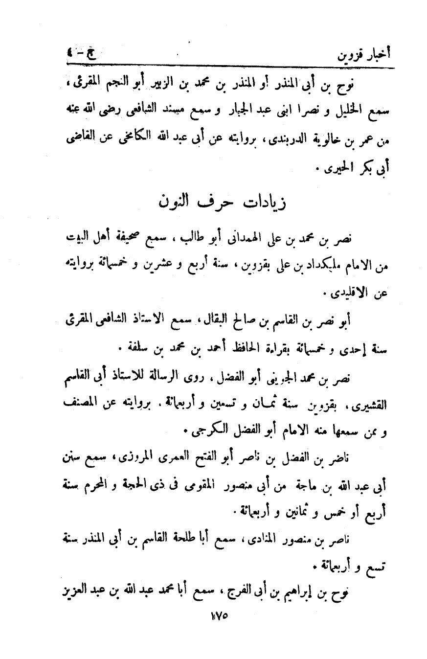 نصر بْن مُحَمَّد الجويني أبو الفضل روى الرسالة للأستاذ أبي القاسم القشيري بقزوين سنة ثمان وتسعين وأربعمائة بروايته عن المصنف وممن سمعها منه الإمام أبو الفضل الكرجي.