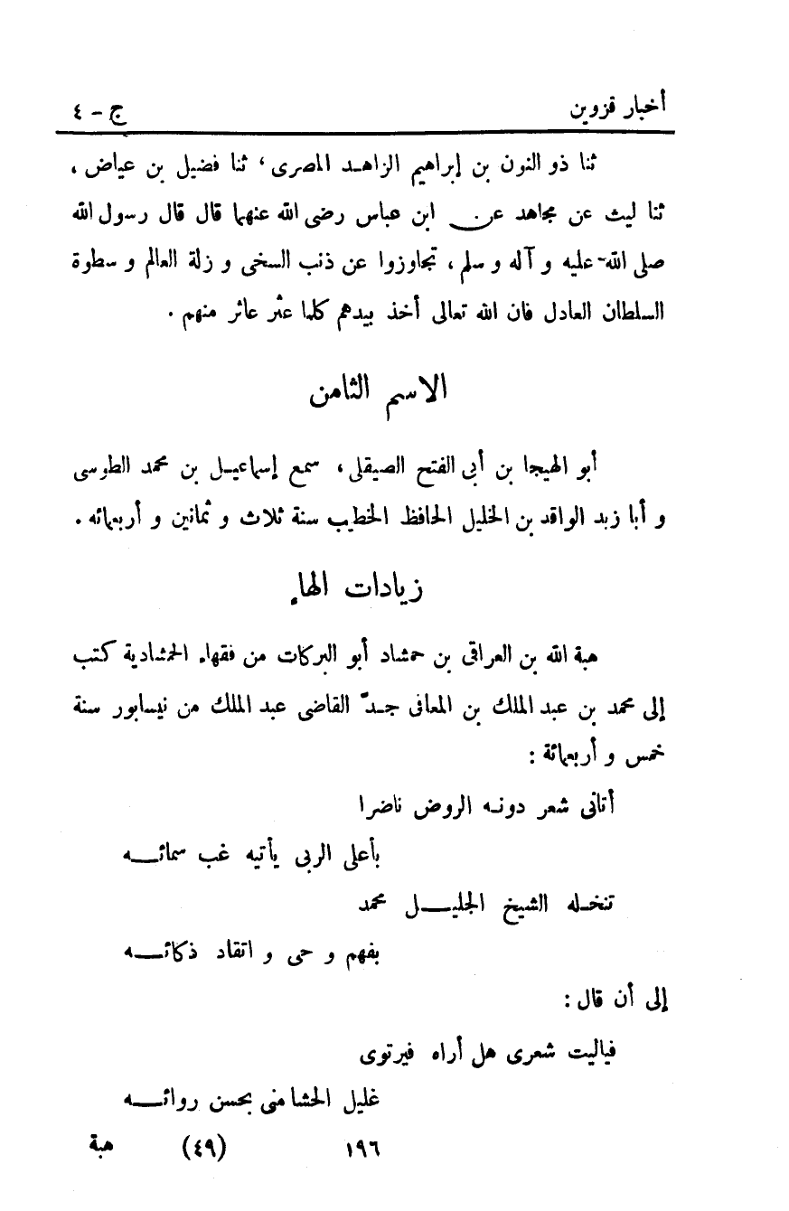 ثنا ذوالنون بْنُ إبراهيم الزَّاهِدُ الْمِصْرِيُّ ثنا فُضَيْلُ بْنُ عِيَاضٍ ثنا لَيْثٌ عَنْ مُجَاهِدٍ عَنِ ابْنِ عَبَّاسٍ رَضِيَ اللَّهُ عَنْهُمَا قَالَ قَالَ رَسُولُ اللَّهِ صَلَّى اللَّهُ عَلَيْهِ وآله وَسَلَّمَ: "تَجَاوَزُوا عَنْ ذَنْبِ السَّخِيِّ وَزَلَّةِ الْعَالِمِ وَسَطْوَةِ السُّلْطَانِ الْعَادِلِ فإن الله تعالى أحذ بِيَدِهِمْ كُلَّمَا عَثَرَ عَاثِرٌ مِنْهُمْ".