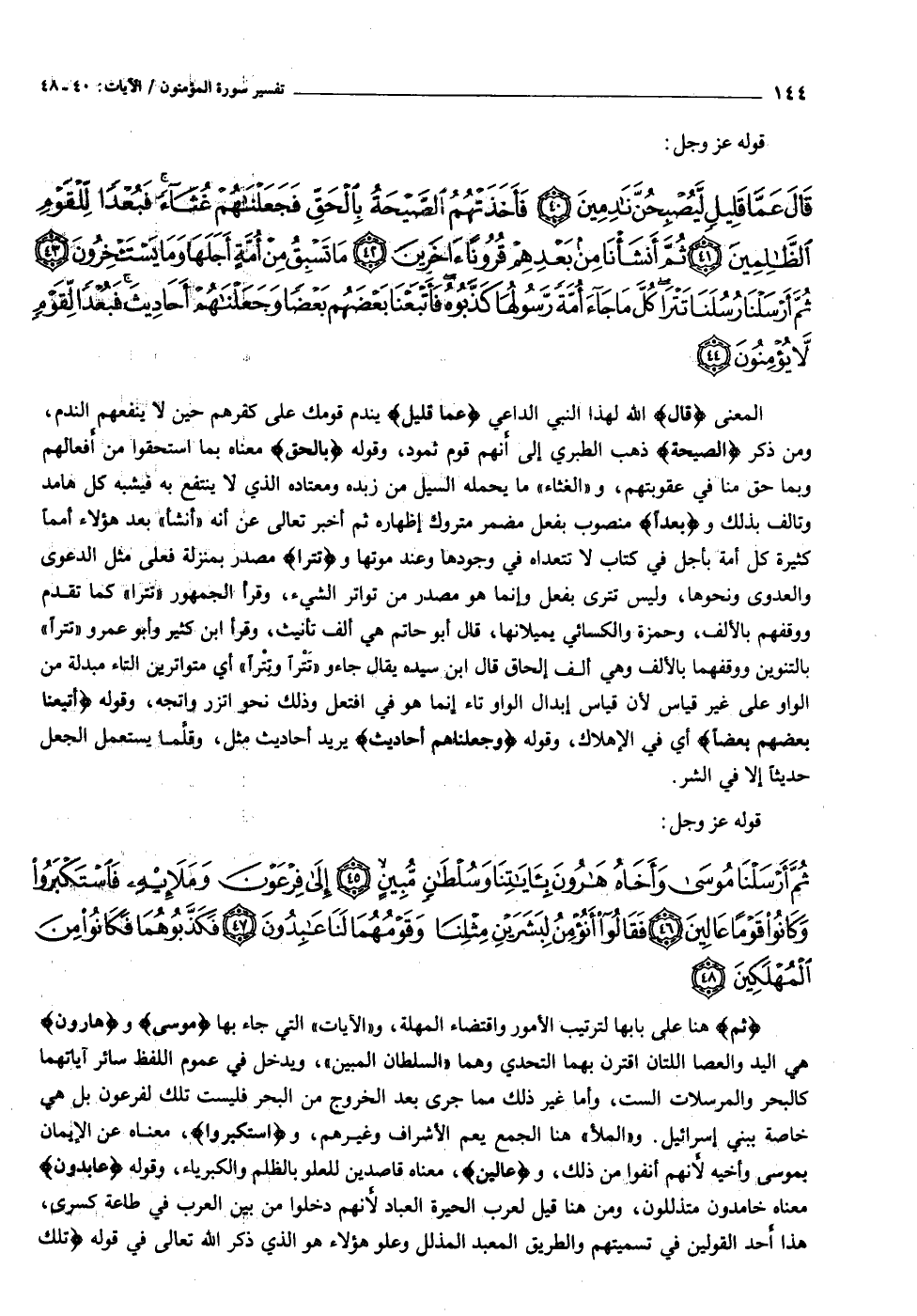 [سورة المؤمنون (٢٣) : الآيات ٤٠ الى ٤٤]