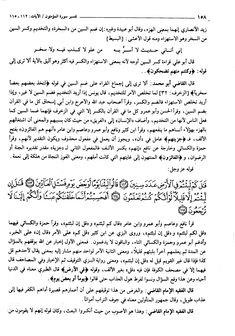 قالَ كَمْ لَبِثْتُمْ فِي الْأَرْضِ عَدَدَ سِنِينَ (١١٢) قالُوا لَبِثْنا يَوْماً أَوْ بَعْضَ يَوْمٍ فَسْئَلِ الْعادِّينَ (١١٣) قالَ إِنْ لَبِثْتُمْ إِلاَّ قَلِيلاً لَوْ أَنَّكُمْ كُنْتُمْ تَعْلَمُونَ (١١٤) أَفَحَسِبْتُمْ أَنَّما خَلَقْناكُمْ عَبَثاً وَأَنَّكُمْ إِلَيْنا لا تُرْجَعُونَ (١١٥)
