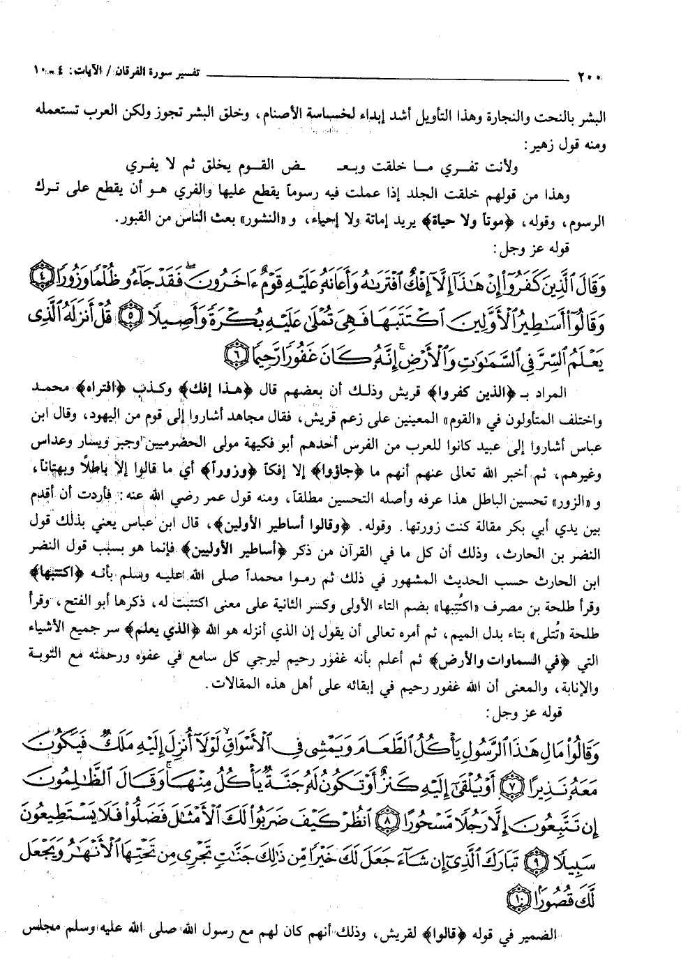 وَقالَ الَّذِينَ كَفَرُوا إِنْ هَذا إِلاَّ إِفْكٌ افْتَراهُ وَأَعانَهُ عَلَيْهِ قَوْمٌ آخَرُونَ فَقَدْ جاؤُ ظُلْماً وَزُوراً (٤) وَقالُوا أَساطِيرُ الْأَوَّلِينَ اكْتَتَبَها فَهِيَ تُمْلى عَلَيْهِ بُكْرَةً وَأَصِيلاً (٥) قُلْ أَنْزَلَهُ الَّذِي يَعْلَمُ السِّرَّ فِي السَّماواتِ وَالْأَرْضِ إِنَّهُ كانَ غَفُوراً رَحِيماً (٦)