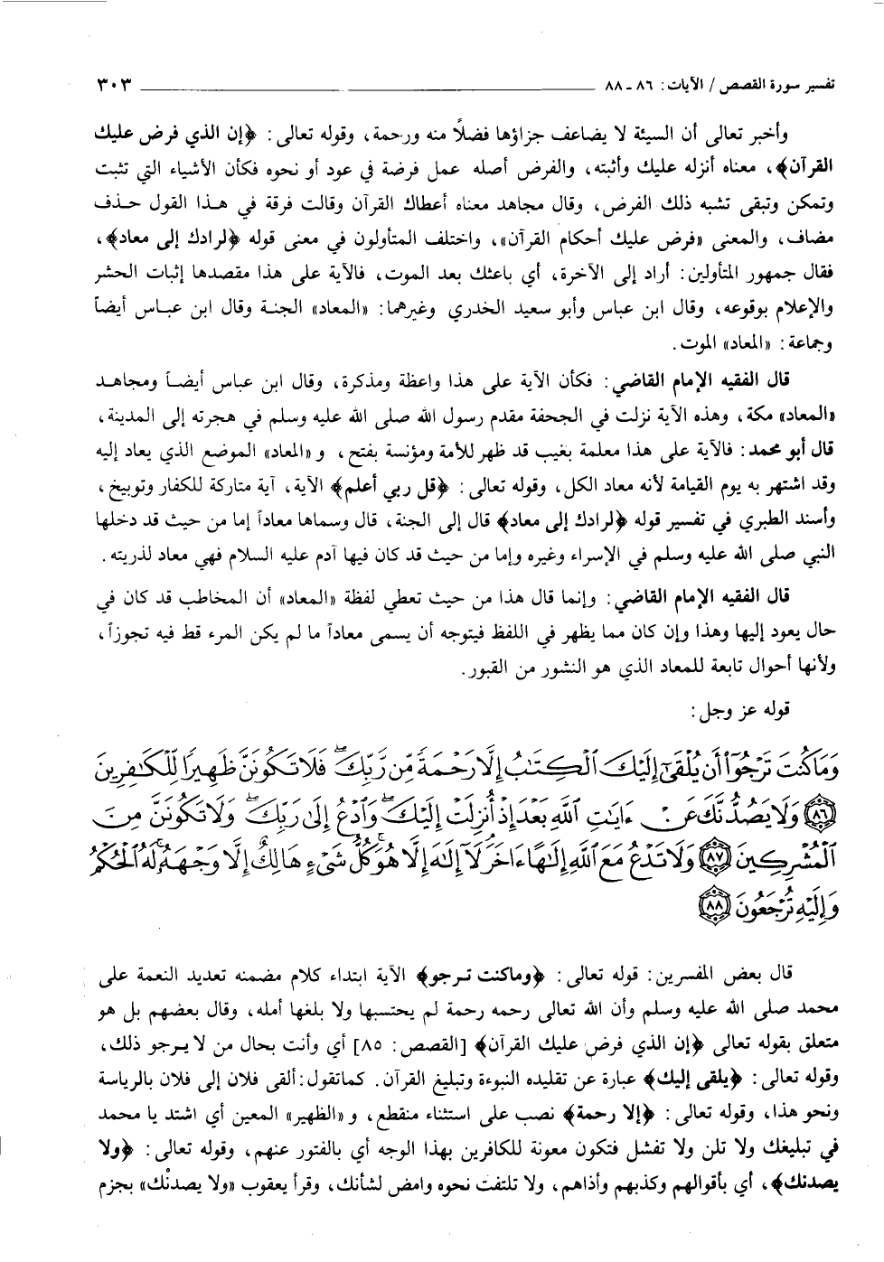 وَما كُنْتَ تَرْجُوا أَنْ يُلْقى إِلَيْكَ الْكِتابُ إِلاَّ رَحْمَةً مِنْ رَبِّكَ فَلا تَكُونَنَّ ظَهِيراً لِلْكافِرِينَ (٨٦) وَلا يَصُدُّنَّكَ عَنْ آياتِ اللَّهِ بَعْدَ إِذْ أُنْزِلَتْ إِلَيْكَ وَادْعُ إِلى رَبِّكَ وَلا تَكُونَنَّ مِنَ الْمُشْرِكِينَ (٨٧) وَلا تَدْعُ مَعَ اللَّهِ إِلهاً آخَرَ لا إِلهَ إِلاَّ هُوَ كُلُّ شَيْءٍ هالِكٌ إِلاَّ وَجْهَهُ لَهُ الْحُكْمُ وَإِلَيْهِ تُرْجَعُونَ (٨٨)