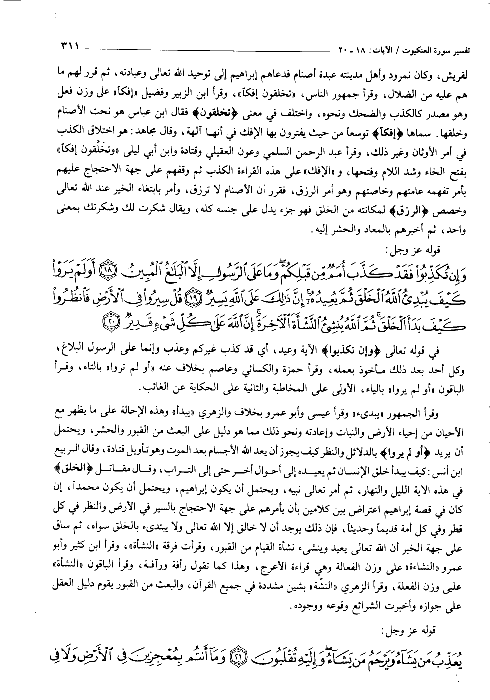 وَإِنْ تُكَذِّبُوا فَقَدْ كَذَّبَ أُمَمٌ مِنْ قَبْلِكُمْ وَما عَلَى الرَّسُولِ إِلاَّ الْبَلاغُ الْمُبِينُ (١٨) أَوَلَمْ يَرَوْا كَيْفَ يُبْدِئُ اللَّهُ الْخَلْقَ ثُمَّ يُعِيدُهُ إِنَّ ذلِكَ عَلَى اللَّهِ يَسِيرٌ (١٩) قُلْ سِيرُوا فِي الْأَرْضِ فَانْظُرُوا كَيْفَ بَدَأَ الْخَلْقَ ثُمَّ اللَّهُ يُنْشِئُ النَّشْأَةَ الْآخِرَةَ إِنَّ اللَّهَ عَلى كُلِّ شَيْءٍ قَدِيرٌ (٢٠)