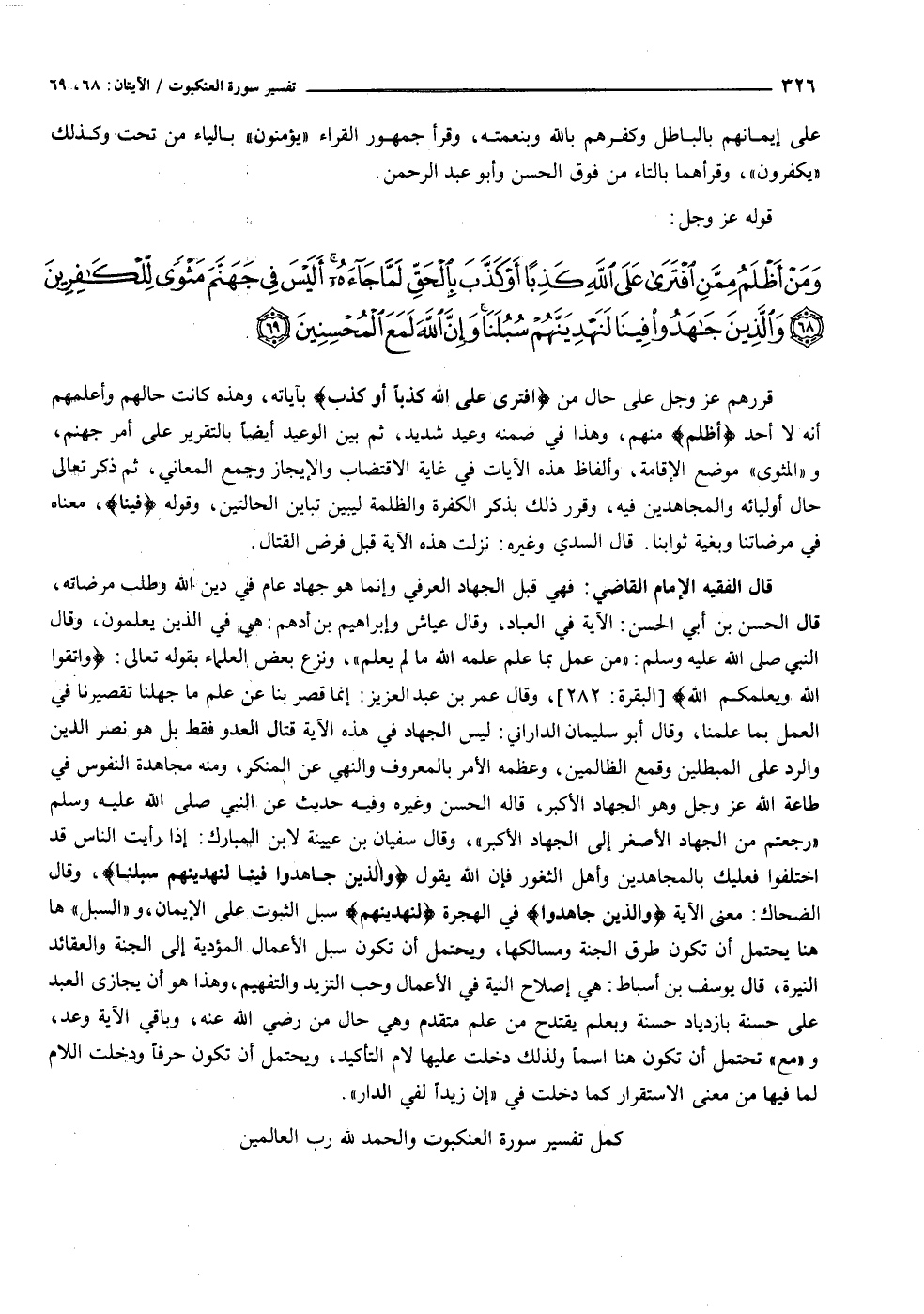 وَمَنْ أَظْلَمُ مِمَّنِ افْتَرى عَلَى اللَّهِ كَذِباً أَوْ كَذَّبَ بِالْحَقِّ لَمَّا جاءَهُ أَلَيْسَ فِي جَهَنَّمَ مَثْوىً لِلْكافِرِينَ (٦٨) وَالَّذِينَ جاهَدُوا فِينا لَنَهْدِيَنَّهُمْ سُبُلَنا وَإِنَّ اللَّهَ لَمَعَ الْمُحْسِنِينَ (٦٩)