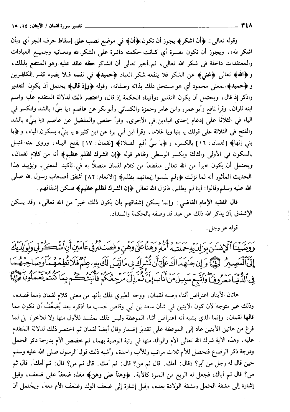 [سورة لقمان (٣١) : الآيات ١٤ الى ١٥]