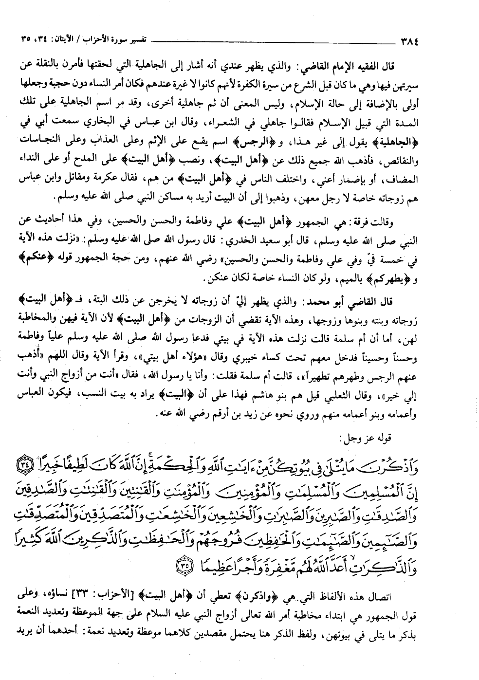[سورة الأحزاب (٣٣) : الآيات ٣٤ الى ٣٥]