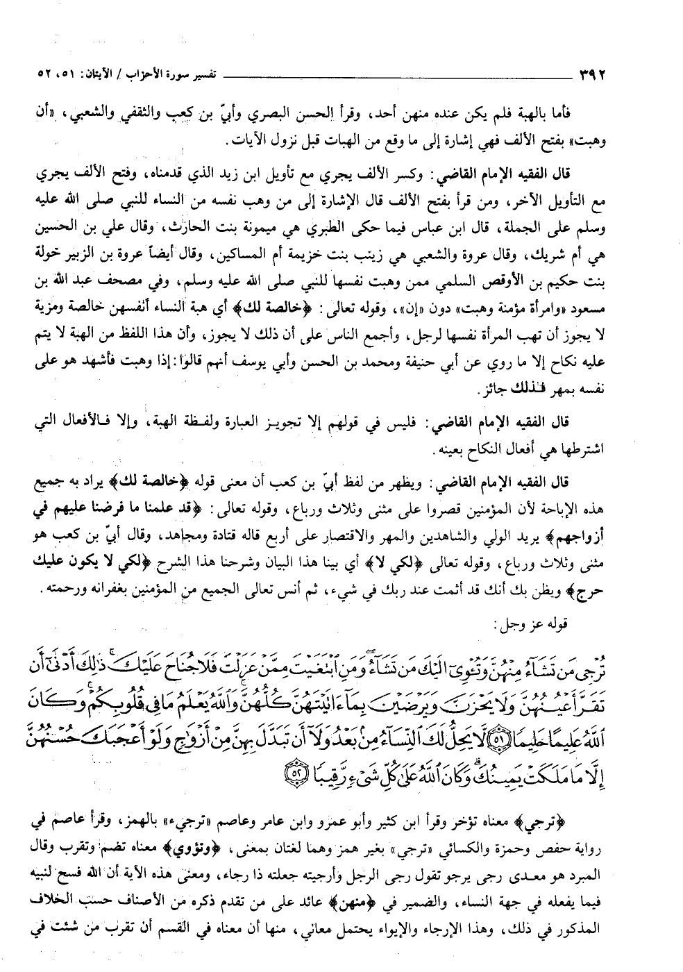[سورة الأحزاب (٣٣) : الآيات ٥١ الى ٥٢]