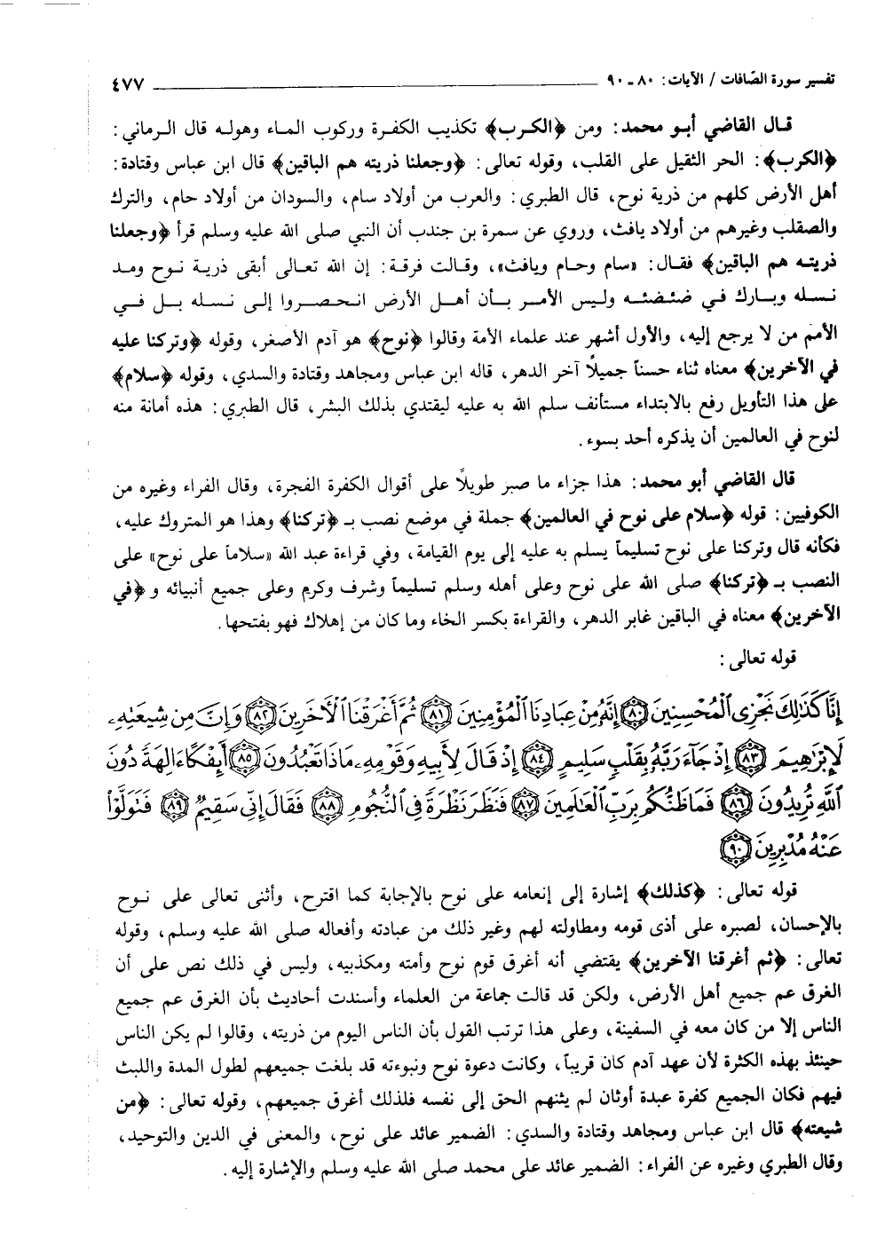إِنَّا كَذلِكَ نَجْزِي الْمُحْسِنِينَ (٨٠) إِنَّهُ مِنْ عِبادِنَا الْمُؤْمِنِينَ (٨١) ثُمَّ أَغْرَقْنَا الْآخَرِينَ (٨٢) وَإِنَّ مِنْ شِيعَتِهِ لَإِبْراهِيمَ (٨٣) إِذْ جاءَ رَبَّهُ بِقَلْبٍ سَلِيمٍ (٨٤)