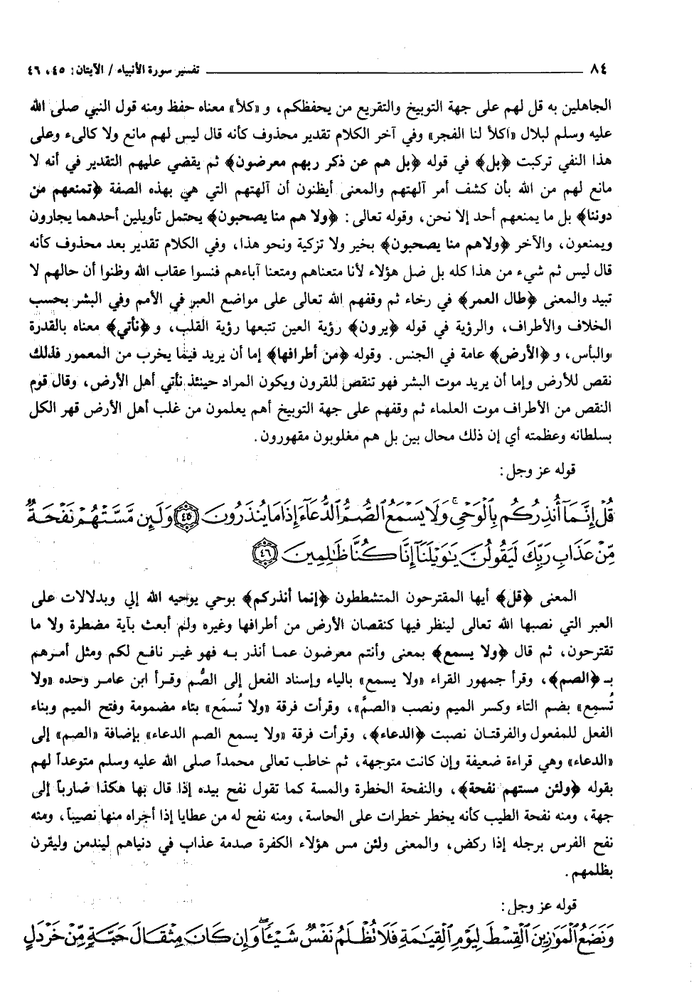 [سورة الأنبياء (٢١) : الآيات ٤٥ الى ٤٦]