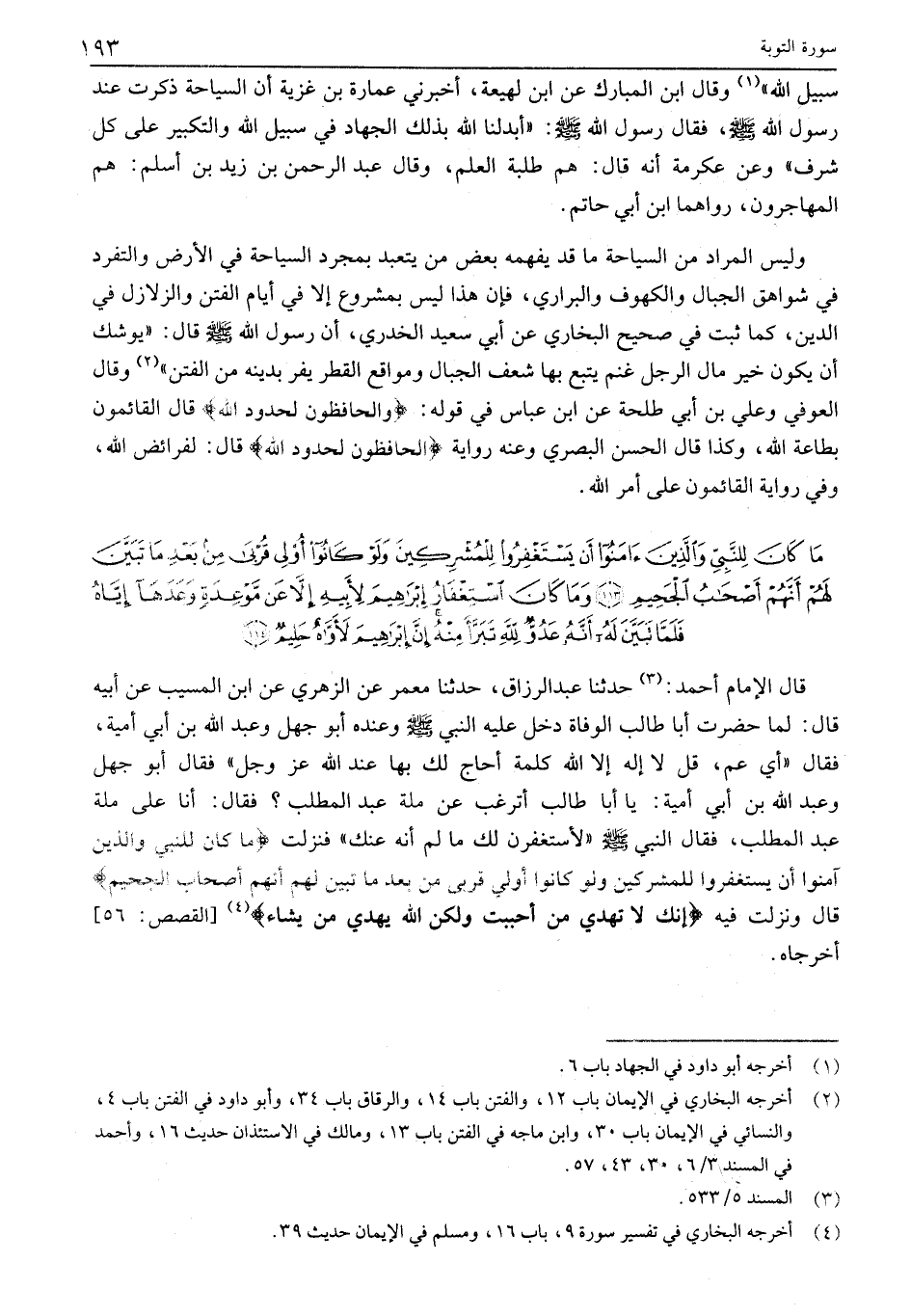 (4) أخرجه البخاري في تفسير سورة 9، باب 16، ومسلم في الإيمان حديث 39.