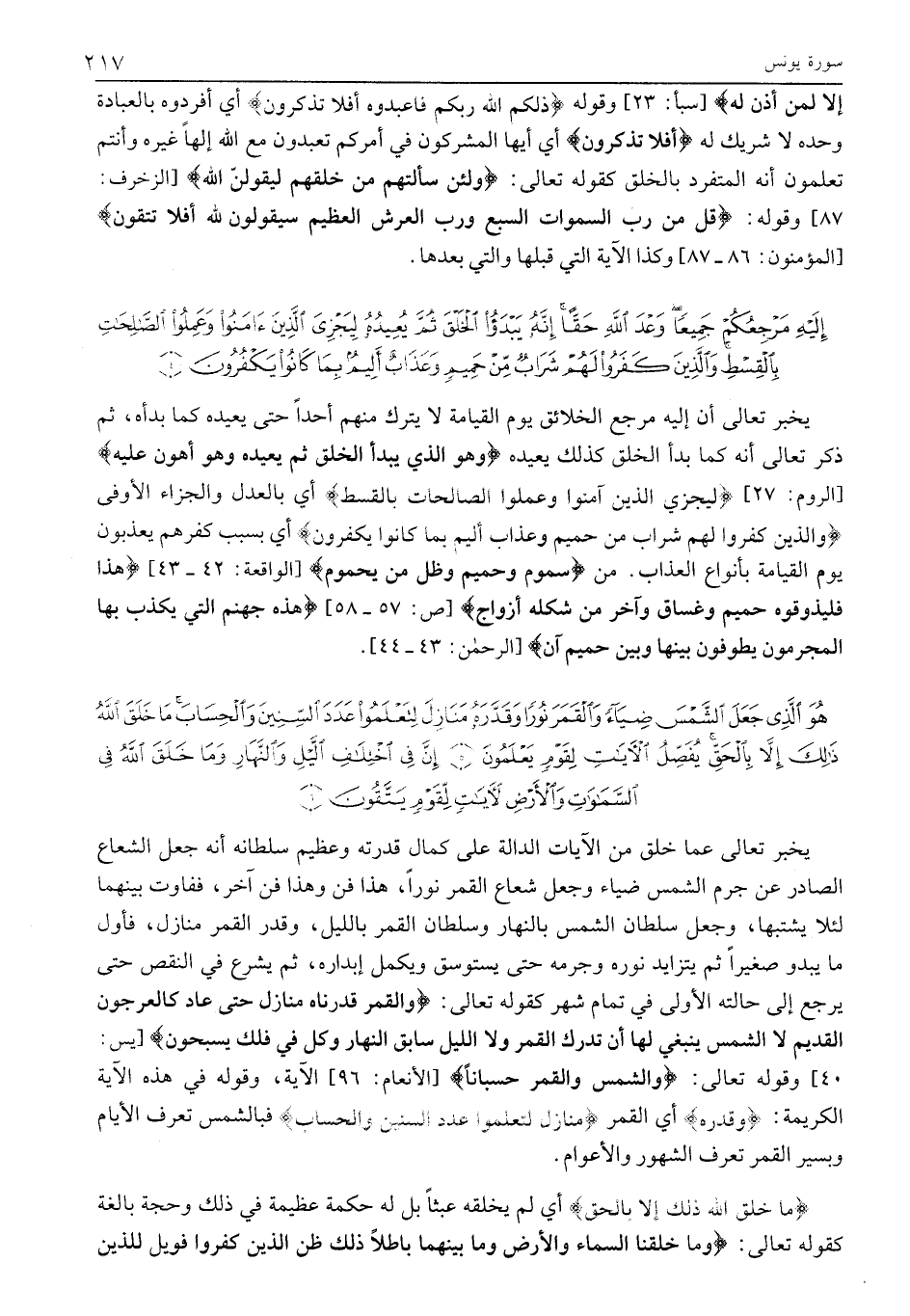 40] وقوله تعالى: وَالشَّمْسَ وَالْقَمَرَ حُسْباناً [الأنعام: 96] الآية، وقوله فِي هَذِهِ الْآيَةِ الْكَرِيمَةِ: وَقَدَّرَهُ أَيْ الْقَمَرَ مَنازِلَ لِتَعْلَمُوا عَدَدَ السِّنِينَ وَالْحِسابَ فَبِالشَّمْسِ تُعْرَفُ الْأَيَّامُ وَبِسَيْرِ الْقَمَرِ تُعْرَفُ الشُّهُورُ وَالْأَعْوَامُ.