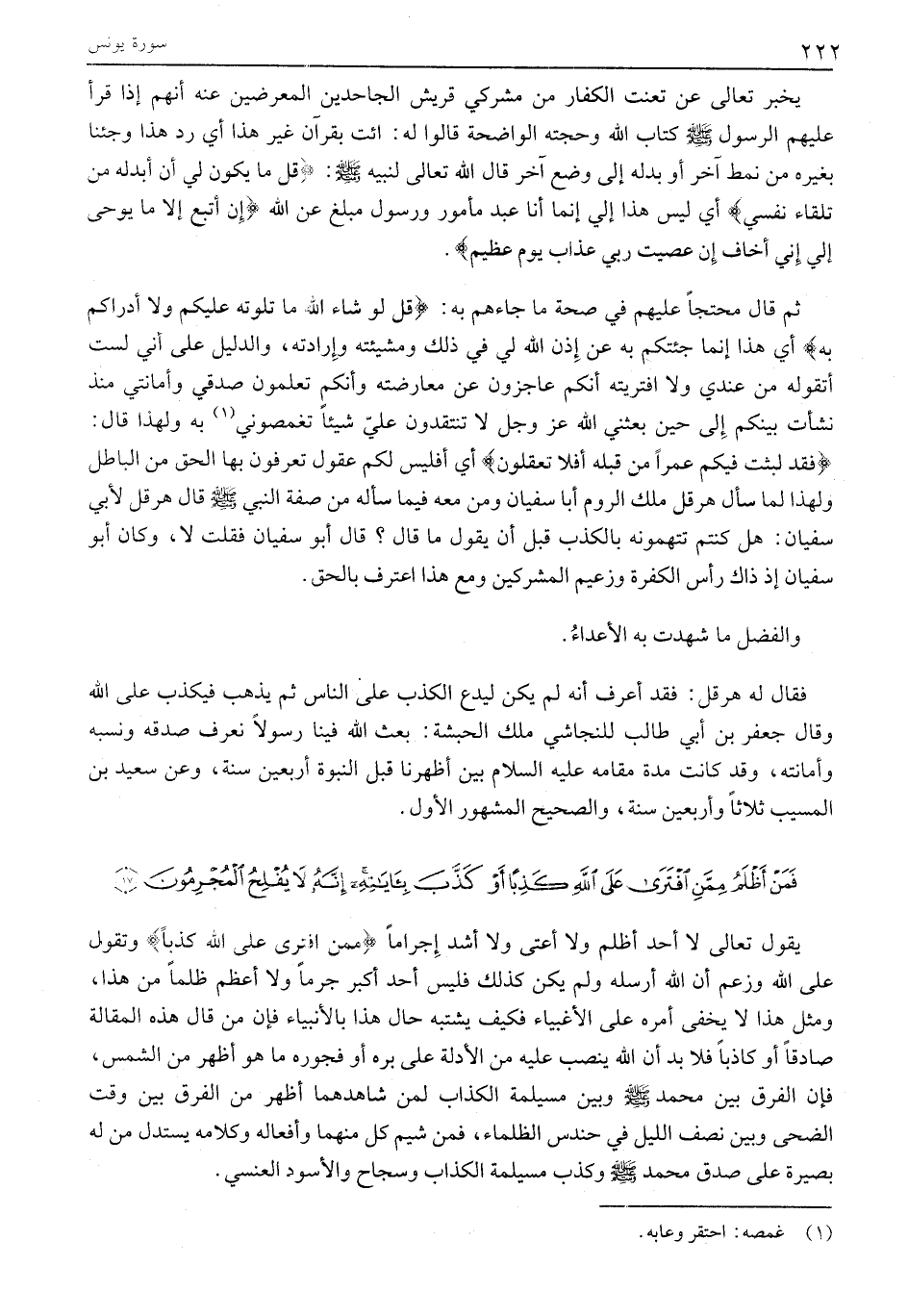فَقَدْ لَبِثْتُ فِيكُمْ عُمُراً مِنْ قَبْلِهِ أَفَلا تَعْقِلُونَ أَيْ أَفَلَيْسَ لَكُمْ عُقُولٌ تَعْرِفُونَ بِهَا الْحَقَّ مِنَ الْبَاطِلِ وَلِهَذَا لَمَّا سَأَلَ هِرَقْلُ مَلِكُ الرُّومِ أَبَا سُفْيَانَ وَمَنْ مَعَهُ فِيمَا سَأَلَهُ مِنْ صِفَةِ النَّبِيِّ صَلَّى اللَّهُ عَلَيْهِ وَسَلَّمَ قال هرقل لأبي سفيان: هَلْ كُنْتُمْ تَتَّهِمُونَهُ بِالْكَذِبِ قَبْلَ أَنْ يَقُولَ مَا قَالَ؟ قَالَ أَبُو سُفْيَانَ فَقُلْتُ لَا، وكان أَبُو سُفْيَانَ إِذْ ذَاكَ رَأْسَ الْكَفَرَةِ وَزَعِيمَ الْمُشْرِكِينَ وَمَعَ هَذَا اعْتَرَفَ بِالْحَقِّ.
