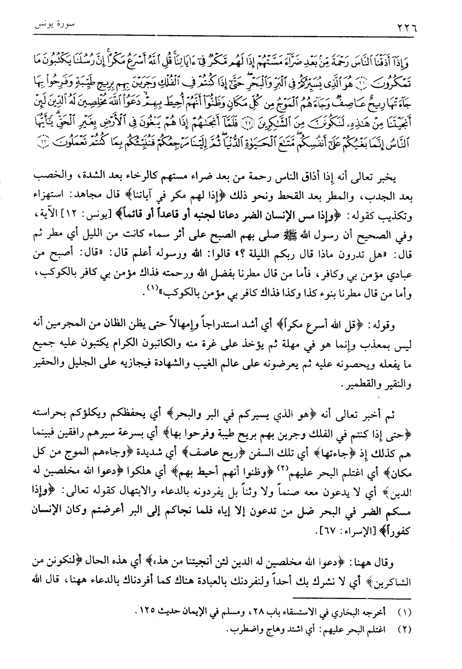(1) أخرجه البخاري في الاستسقاء باب 28، ومسلم في الإيمان حديث 125.