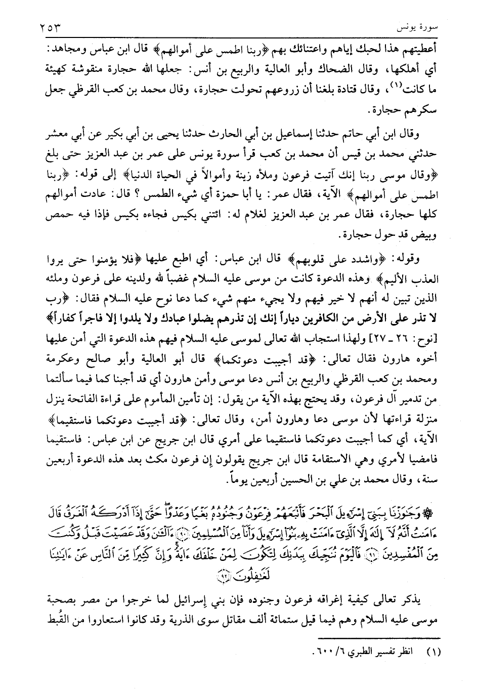 أعطيتهم هَذَا لِحُبِّكَ إِيَّاهُمْ وَاعْتِنَائِكَ بِهِمْ رَبَّنَا اطْمِسْ عَلى أَمْوالِهِمْ قَالَ ابْنُ عَبَّاسٍ وَمُجَاهِدٌ: