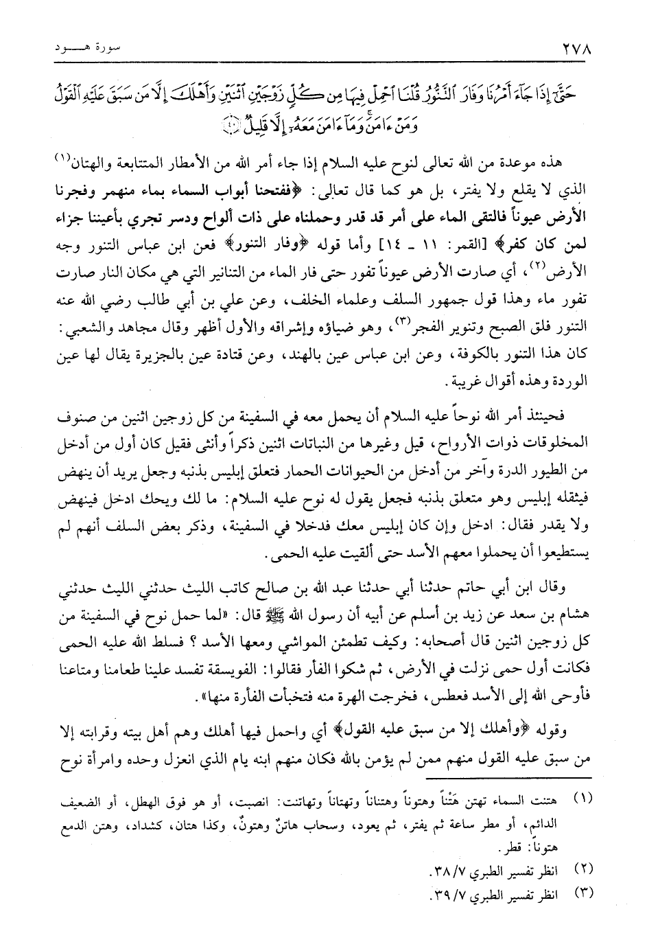 حَتَّى إِذا جاءَ أَمْرُنا وَفارَ التَّنُّورُ قُلْنَا احْمِلْ فِيها مِنْ كُلٍّ زَوْجَيْنِ اثْنَيْنِ وَأَهْلَكَ إِلاَّ مَنْ سَبَقَ عَلَيْهِ الْقَوْلُ وَمَنْ آمَنَ وَما آمَنَ مَعَهُ إِلاَّ قَلِيلٌ (40)