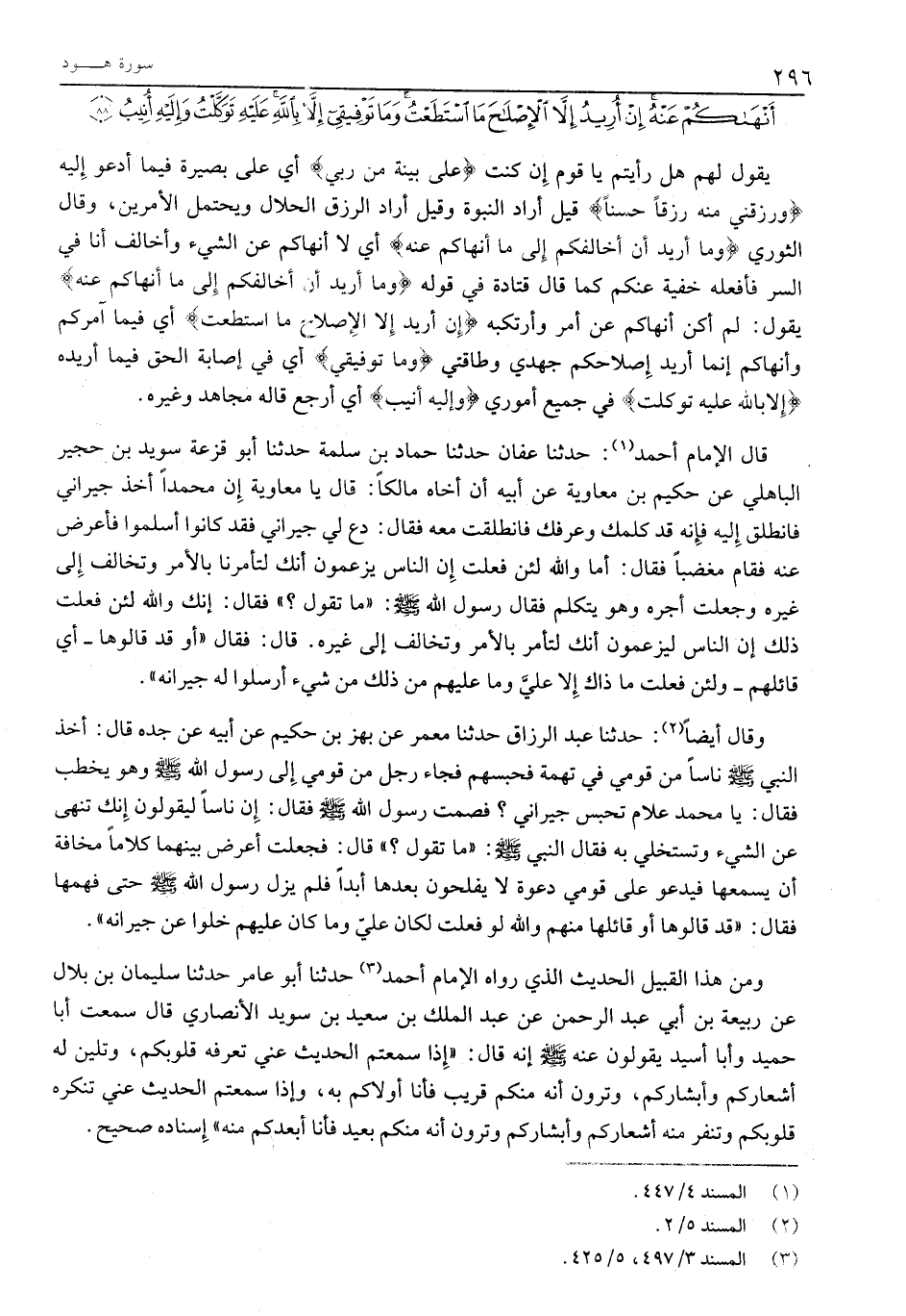 قالَ يا قَوْمِ أَرَأَيْتُمْ إِنْ كُنْتُ عَلى بَيِّنَةٍ مِنْ رَبِّي وَرَزَقَنِي مِنْهُ رِزْقاً حَسَناً وَما أُرِيدُ أَنْ أُخالِفَكُمْ إِلى مَا أَنْهاكُمْ عَنْهُ إِنْ أُرِيدُ إِلاَّ الْإِصْلاحَ مَا اسْتَطَعْتُ وَما تَوْفِيقِي إِلاَّ بِاللَّهِ عَلَيْهِ تَوَكَّلْتُ وَإِلَيْهِ أُنِيبُ (88)