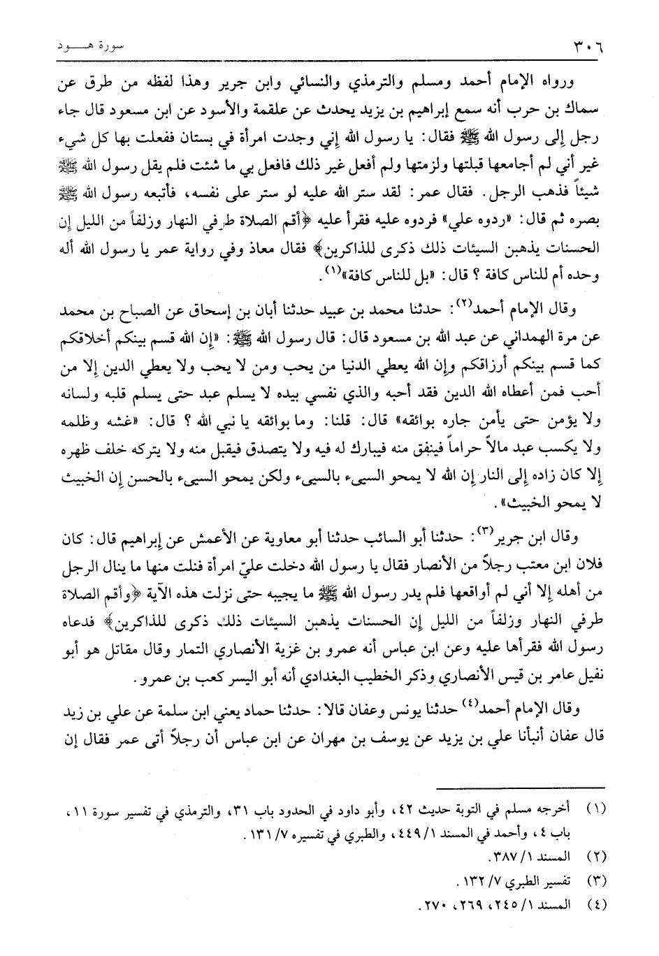 (1) أخرجه مسلم في التوبة حديث 42، وأبو داود في الحدود باب 31، والترمذي في تفسير سورة 11، باب 4، وأحمد في المسند 1/ 449، والطبري في تفسيره 7/ 131.