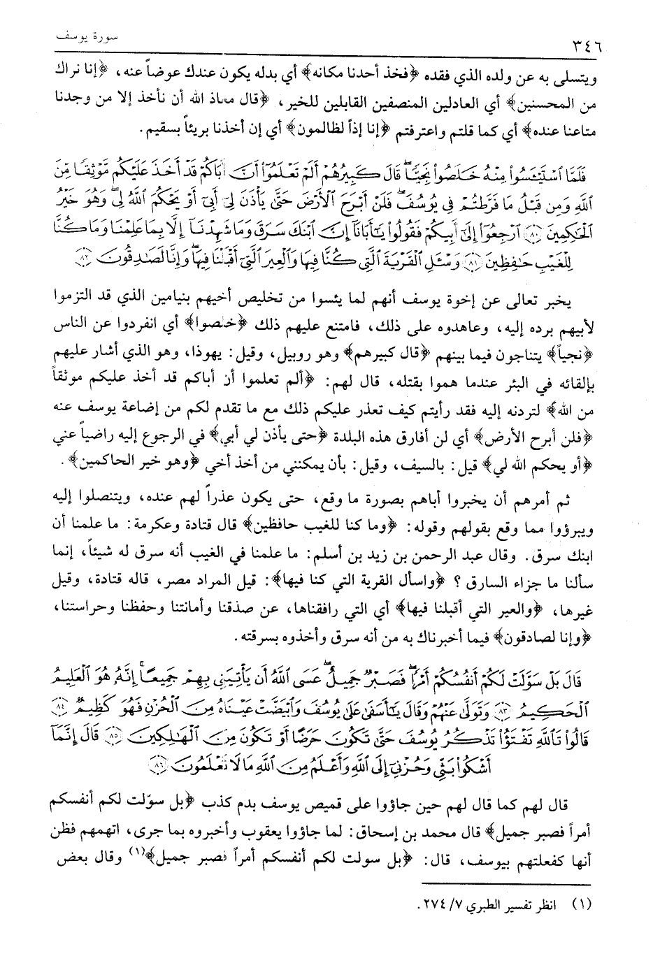 فَلَمَّا اسْتَيْأَسُوا مِنْهُ خَلَصُوا نَجِيًّا قالَ كَبِيرُهُمْ أَلَمْ تَعْلَمُوا أَنَّ أَباكُمْ قَدْ أَخَذَ عَلَيْكُمْ مَوْثِقاً مِنَ اللَّهِ وَمِنْ قَبْلُ مَا فَرَّطْتُمْ فِي يُوسُفَ فَلَنْ أَبْرَحَ الْأَرْضَ حَتَّى يَأْذَنَ لِي أَبِي أَوْ يَحْكُمَ اللَّهُ لِي وَهُوَ خَيْرُ الْحاكِمِينَ (80) ارْجِعُوا إِلى أَبِيكُمْ فَقُولُوا يَا أَبانا إِنَّ ابْنَكَ سَرَقَ وَما شَهِدْنا إِلاَّ بِما عَلِمْنا وَما كُنَّا لِلْغَيْبِ حافِظِينَ (81) وَسْئَلِ الْقَرْيَةَ الَّتِي كُنَّا فِيها وَالْعِيرَ الَّتِي أَقْبَلْنا فِيها وَإِنَّا لَصادِقُونَ (82)