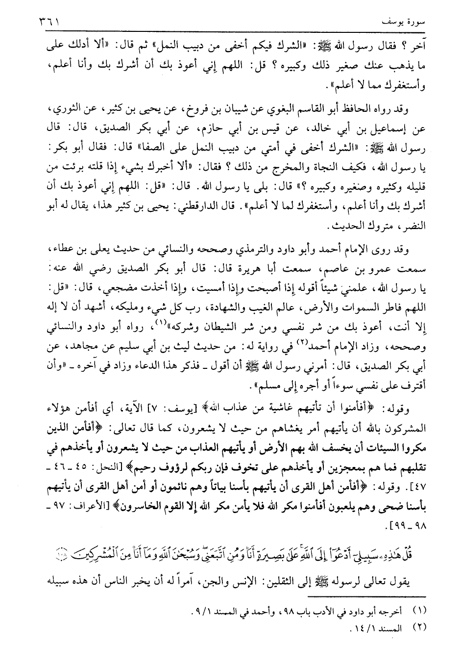 قُلْ هذِهِ سَبِيلِي أَدْعُوا إِلَى اللَّهِ عَلى بَصِيرَةٍ أَنَا وَمَنِ اتَّبَعَنِي وَسُبْحانَ اللَّهِ وَما أَنَا مِنَ الْمُشْرِكِينَ (108)