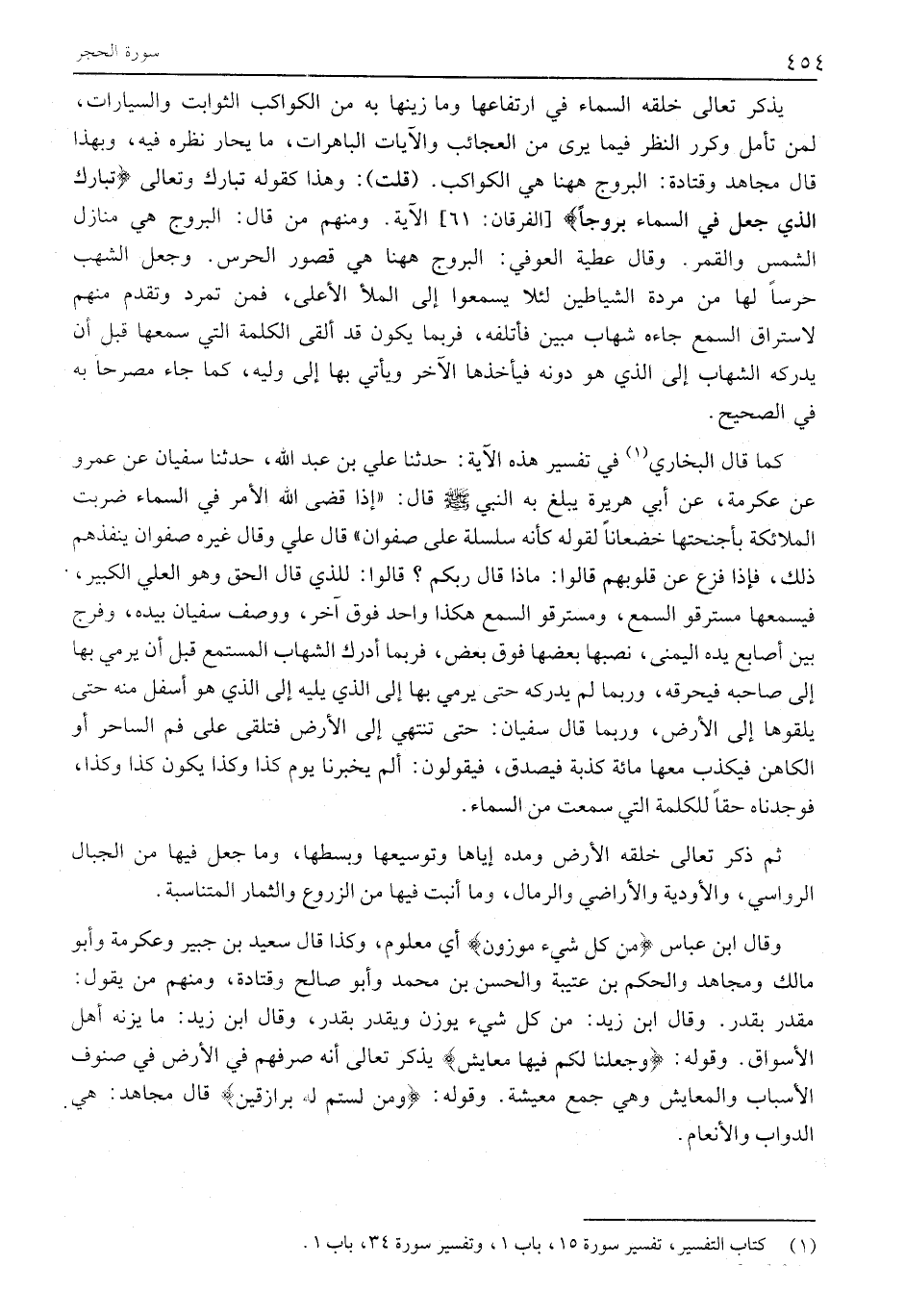 (1) كتاب التفسير، تفسير سورة 15، باب 1، وتفسير سورة 34، باب 1.