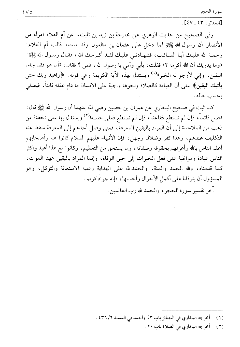 آخر تفسير سورة الحجر، والحمد لله رب العالمين.