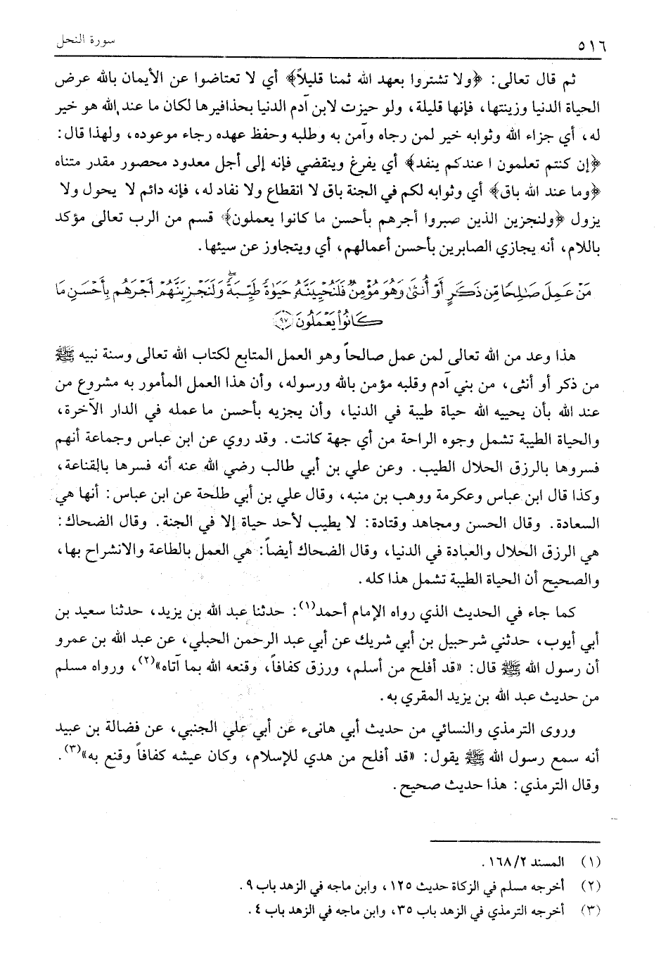 كَمَا جَاءَ فِي الْحَدِيثِ الَّذِي رَوَاهُ الْإِمَامُ أَحْمَدُ «1» : حَدَّثَنَا عَبْدُ اللَّهِ بْنُ يَزِيدَ، حَدَّثَنَا سَعِيدُ بْنُ أَبِي أَيُّوبَ، حَدَّثَنِي شُرَحْبِيلُ بْنُ أبي شَرِيكٍ عَنْ أَبِي عَبْدِ الرَّحْمَنِ الْحُبُلِيِّ، عَنْ عَبْدِ اللَّهِ بْنِ عَمْرٍو أَنَّ رَسُولَ اللَّهِ صَلَّى اللَّهُ عَلَيْهِ وَسَلَّمَ قَالَ: «قَدْ أَفْلَحَ مَنْ أَسْلَمَ، وَرُزِقَ كَفَافًا، وَقَنَّعَهُ اللَّهُ بِمَا آتَاهُ» «2» ، وَرَوَاهُ مُسْلِمٌ مِنْ حَدِيثِ عَبْدِ اللَّهِ بْنِ يزيد المقري بِهِ.