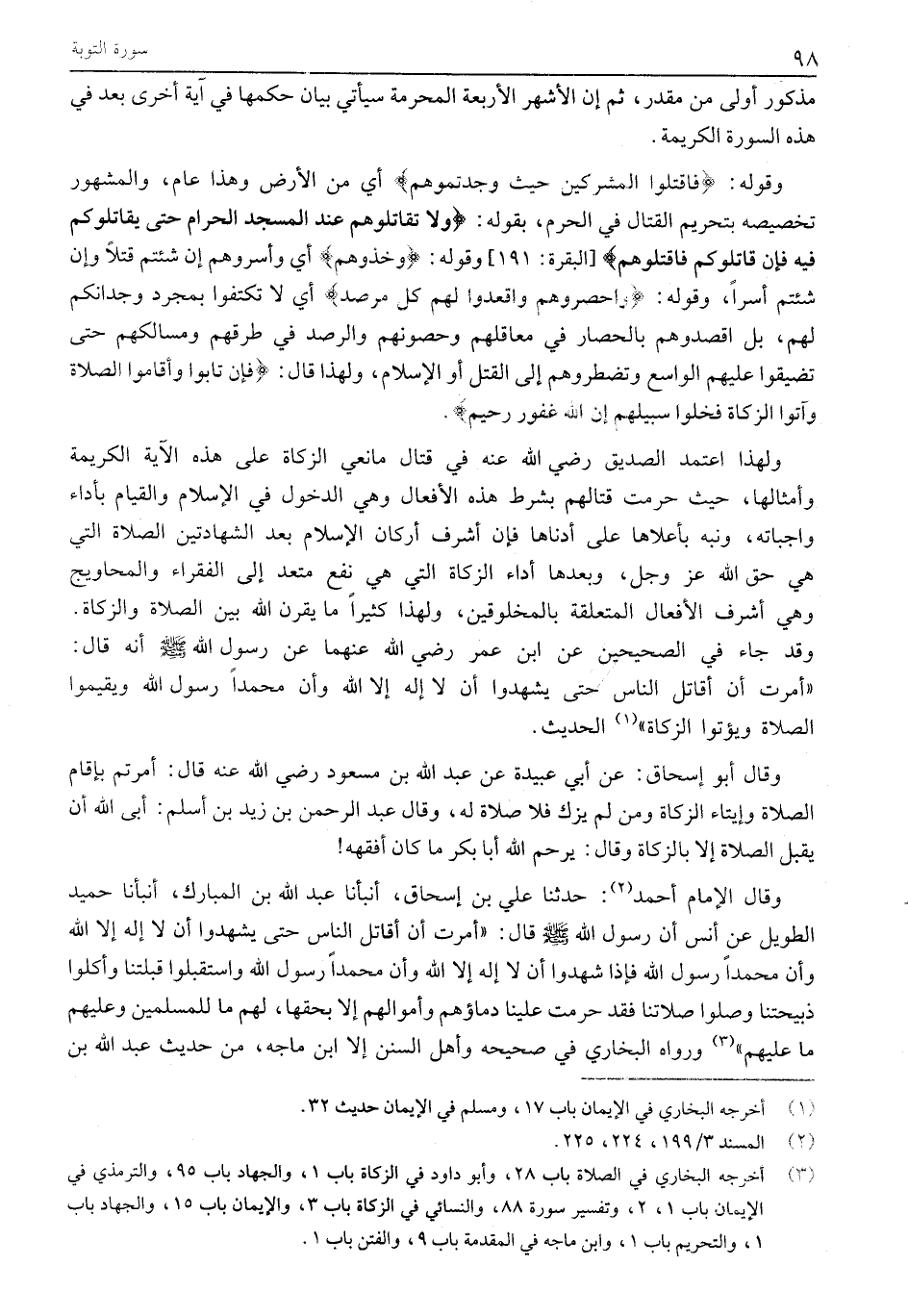 (3) أخرجه البخاري في الصلاة باب 28، وأبو داود في الزكاة باب 1، والجهاد باب 95، والترمذي في الإيمان باب 1، 2، وتفسير سورة 88، والنسائي في الزكاة باب 3، والإيمان باب 15، والجهاد باب 1، والتحريم باب 1، وابن ماجة في المقدمة باب 9، والفتن باب 1.