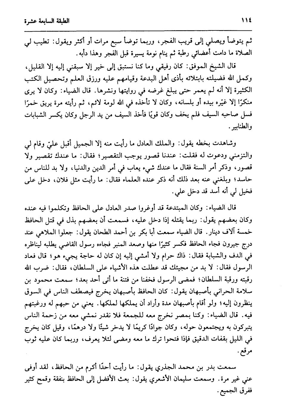 ثم يتوضأ ويصلي إلى قريب الفجر، وربما توضأ سبع مرات أو أكثر ويقول: تطيب لي الصلاة ما دامت أعضائي رطبة, ثم ينام نومة يسيرة قبل الفجر وهذا دأبه.