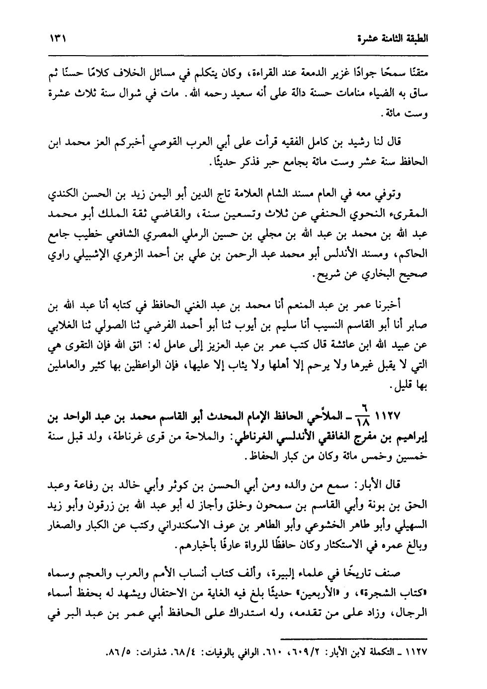 1127- التكملة لابن الأبار: 2/ 609، 610. الوافي بالوفيات: 4/ 68. شذرات الذهب: 5/ 86.