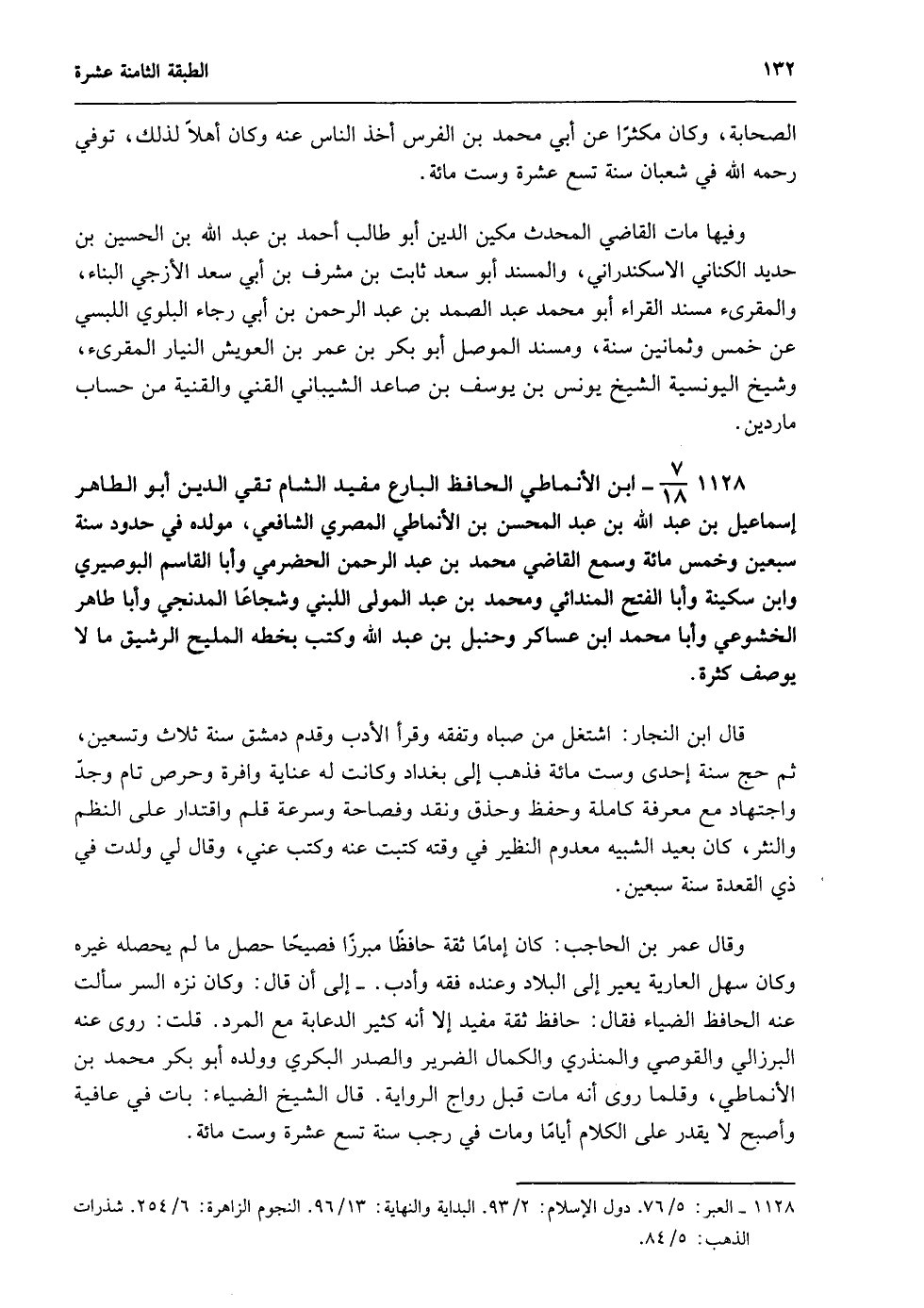 1128- العبر: 5/ 76. دول الإسلام: 2/ 93. البداية والنهاية: 13/ 96. النجوم الزاهرة: 6/ 254. شذرات الذهب: 5/ 84.