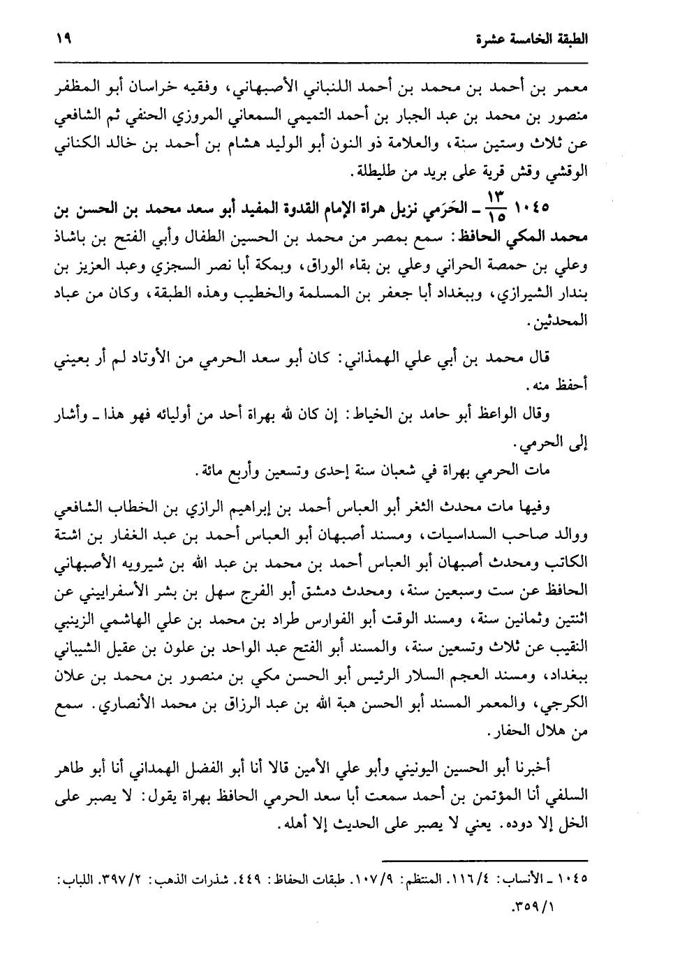1045- الأنساب: 4/ 116. المنتظم: 9/ 107. طبقات الحفاظ: 449. شذرات الذهب: 2/ 397. اللباب: 1/ 359.
