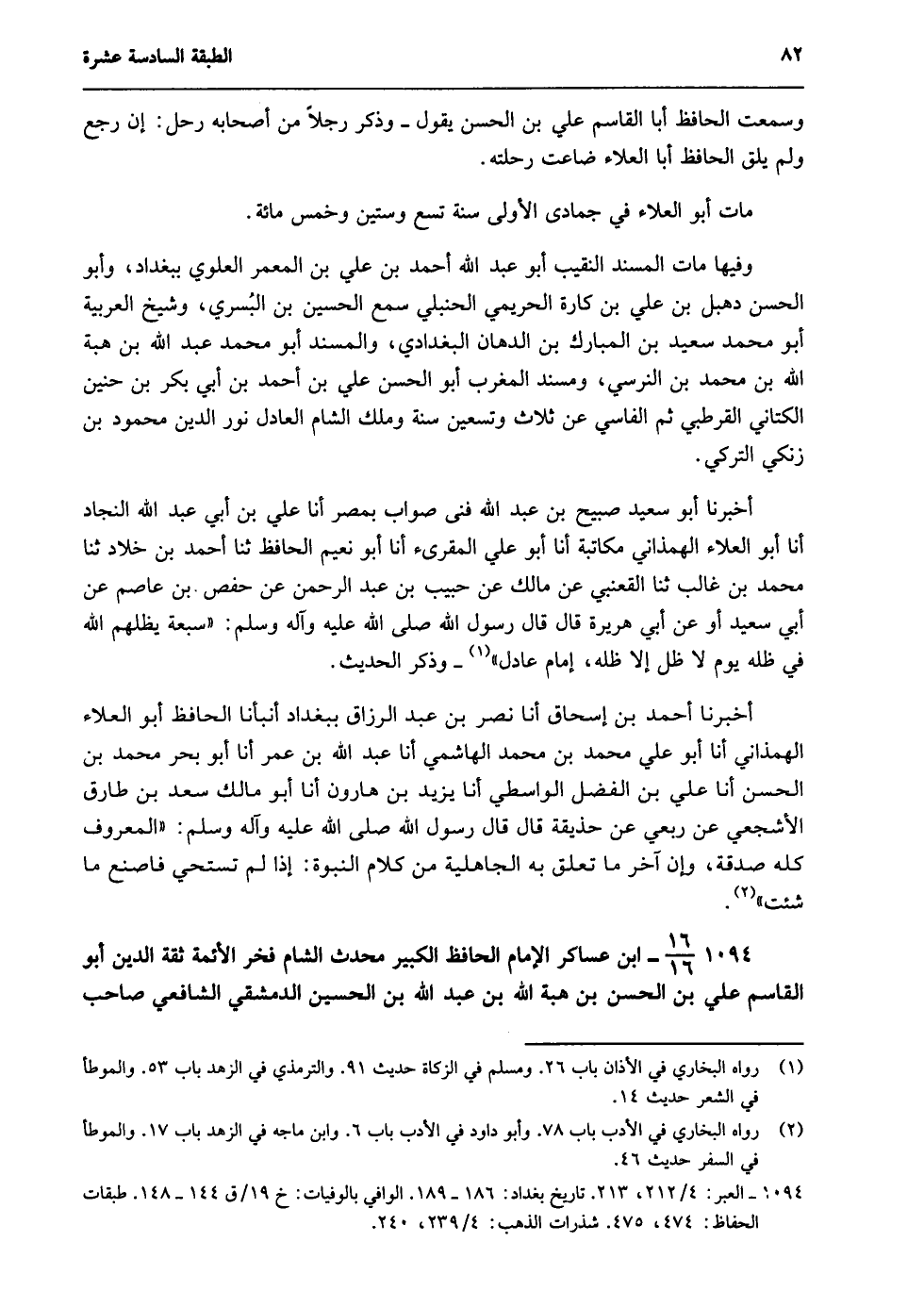 1094- 16/16- ابن عساكر الإمام الحافظ الكبير محدث الشام فخر الأئمة ثقة الدين, أبو القاسم علي بن الحسن بن هبة الله بن عبد الله بن الحسين الدمشقي الشافعي, صاحب