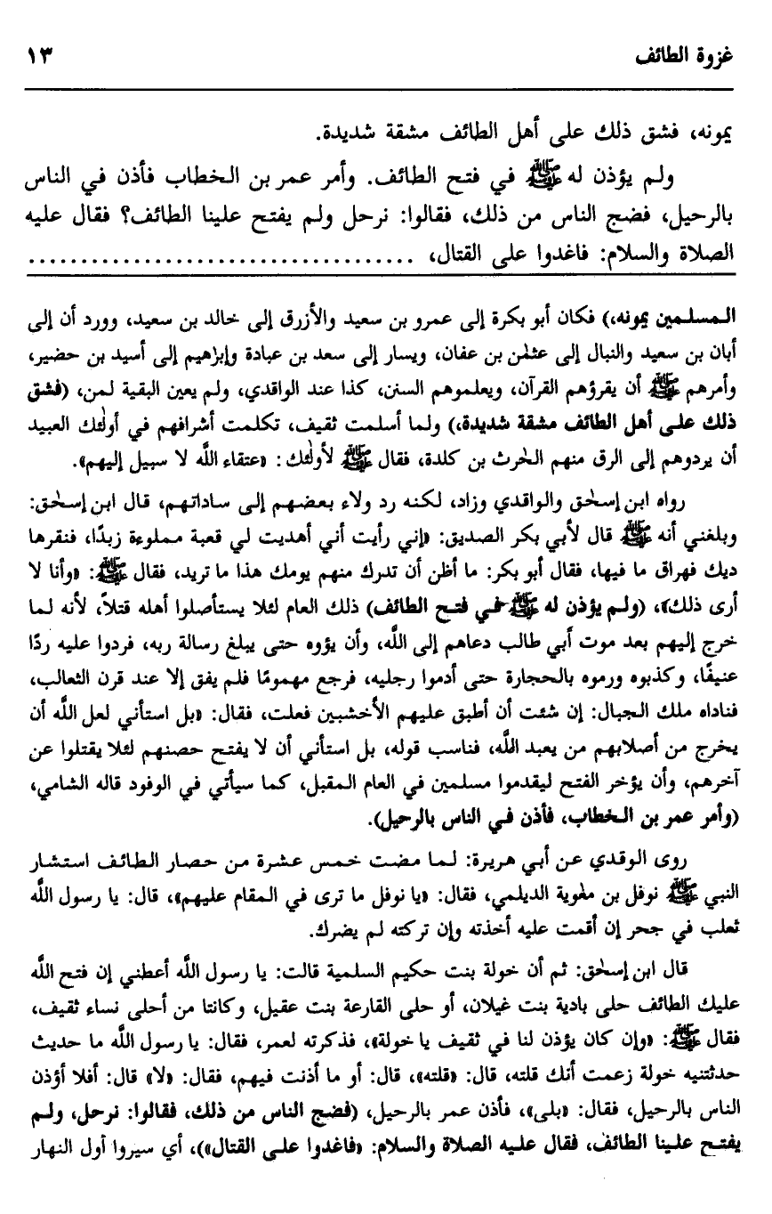 ولم يؤذن له صلى الله عليه وسلم في فتح الطائف، وأمر عمر بن الخطاب فأذن في الناس بالرحيل، فضج الناس من ذلك، فقالوا: نرحل ولم يفتح علينا الطائف؟ فقال عليه الصلاة والسلام: "فاغدوا على القتال"