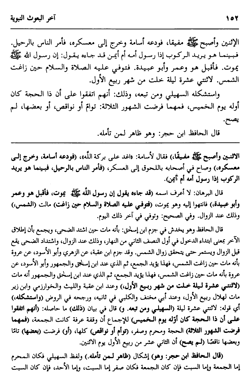 "قال الحافظ ابن حجر: وهو" إشكال "ظاهر لمن تأمله" ولفظ السهيلي فكان المحرم إما الجمعة وإما السبت فإن كان الجمعة فكان صفر إما السبت، وإما الأحد، فإن كان السبت