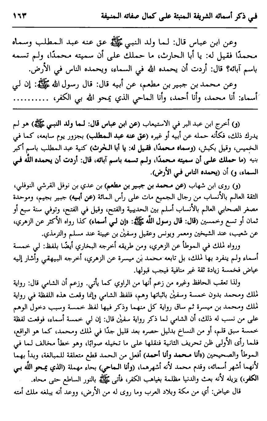 وعن محمد بن جبير بن مطعم عن أبيه قال: قال رسول الله صلى الله عليه وسلم: "إن لي أسماء: أنا محمد، وأنا أحمد وأنا الماحي الي يمحو الله بي الكفر،