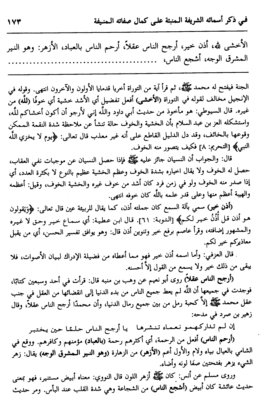 الأخشى لله، أذن خير، أرجح الناس عقلا، أرحم الناس بالعباد، الأزهر: وهو النير المشرق الوجه، أشجع الناس،