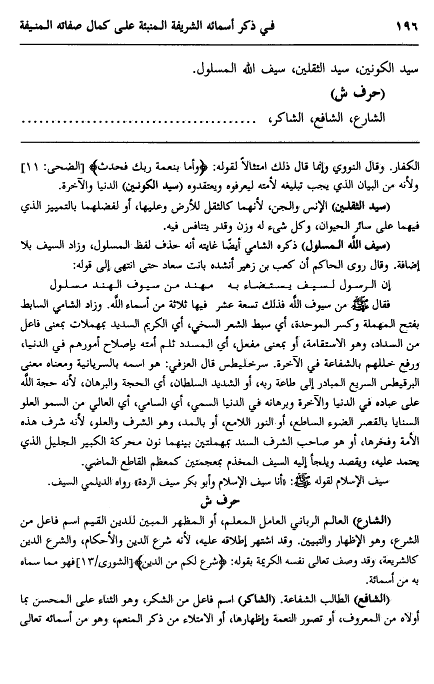 "الشافع" الطالب الشفاعة. "الشاكر" اسم فاعل من الشكر، وهو الثناء على المحسن بما أولاه من المعروف، أو تصور النعمة وإظهارها، أو الامتلاء من ذكر المنعم، وهو من أسمائه تعالى