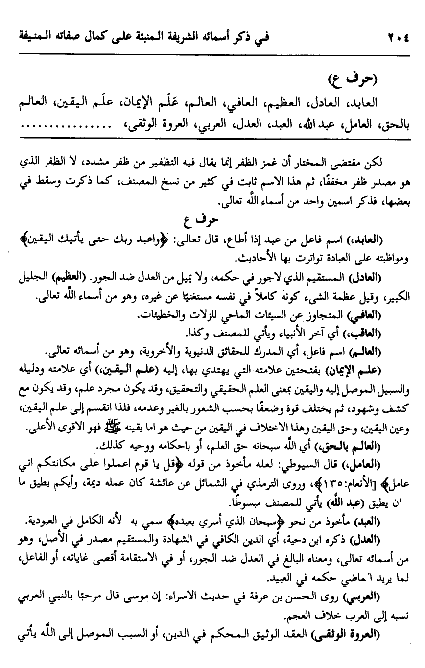 العابد، العادل، العظيم، العافي، العالم، علم الإيمان، علم اليقين، العالم بالحق، العامل، عبد الله، العبد، العدل، العربي، العروة الوثقى،