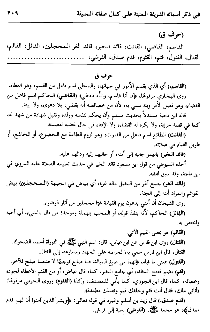 القاسم، القاضي، القانت، قائد الخير، قائد الغر المحجلين، القائل، القائم، القتال، القتول، قثم، القثوم، قدم صدق، القرشي،