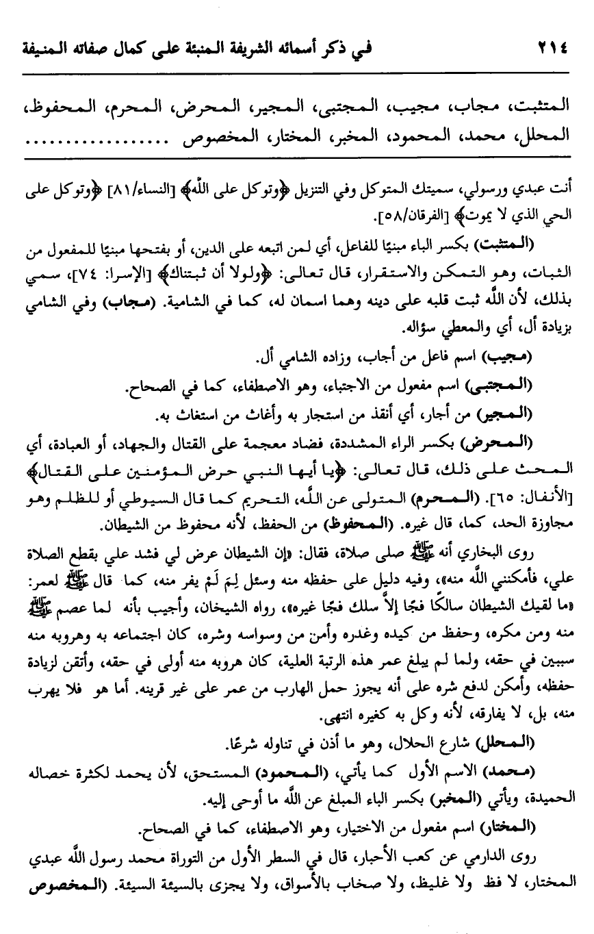 المتثبت، مجاب، مجيب، المجتبي، المجير، المحرض، المحرم، المحفوظ، المحلل، محمد، المحمود، المخبر، المختار، المخصوص